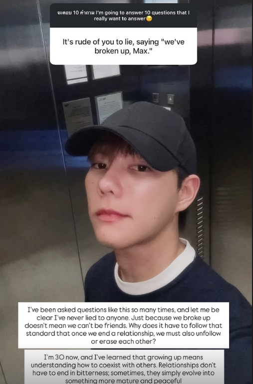 Đoạn phản hồi này đã xóa tan nghi ngờ Newyear "lò vi sóng" với Max khi anh nhấn theo dõi lại bạn trai cũ vào vài ngày sau thông báo đã đường ai nấy đi. Trước đó, vào ngày 30/10, với bạn trai người Ukraine sau 9 tháng hẹn hò. Max "phủ đen" trang cá nhân bằng 3 bài đăng kèm một Story Instagram xin lỗi tình cũ.