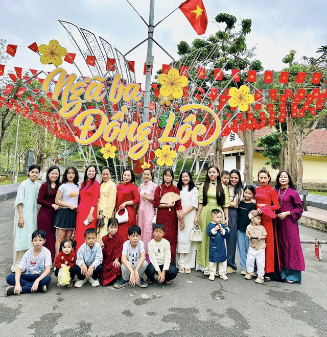 Nhiều du khách chụp ảnh lưu niêm tại Khu di tích lịch sử Ngã ba Đồng Lộc.