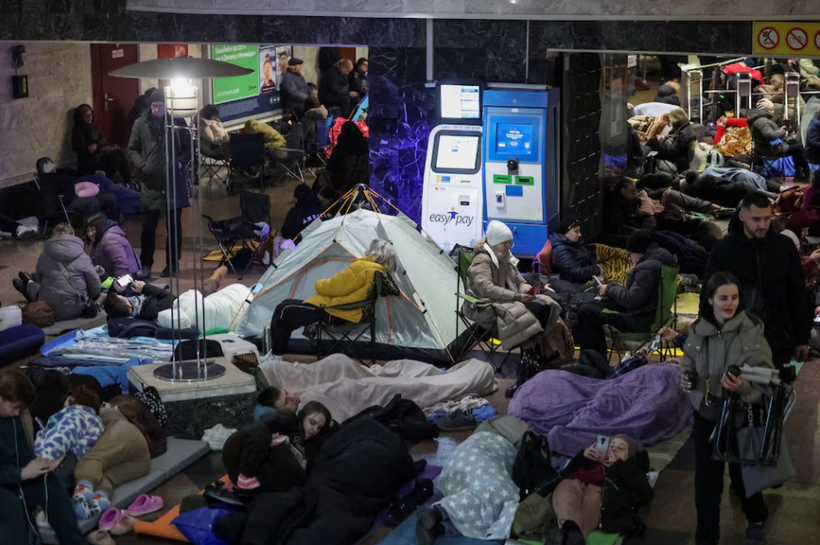 Người dân trú ẩn bên trong một ga tàu điện ngầm trong cuộc tấn công bằng tên lửa và máy bay không người lái của Nga, tại Kiev, Ukraine ngày 25/11. Ảnh: Reuters.