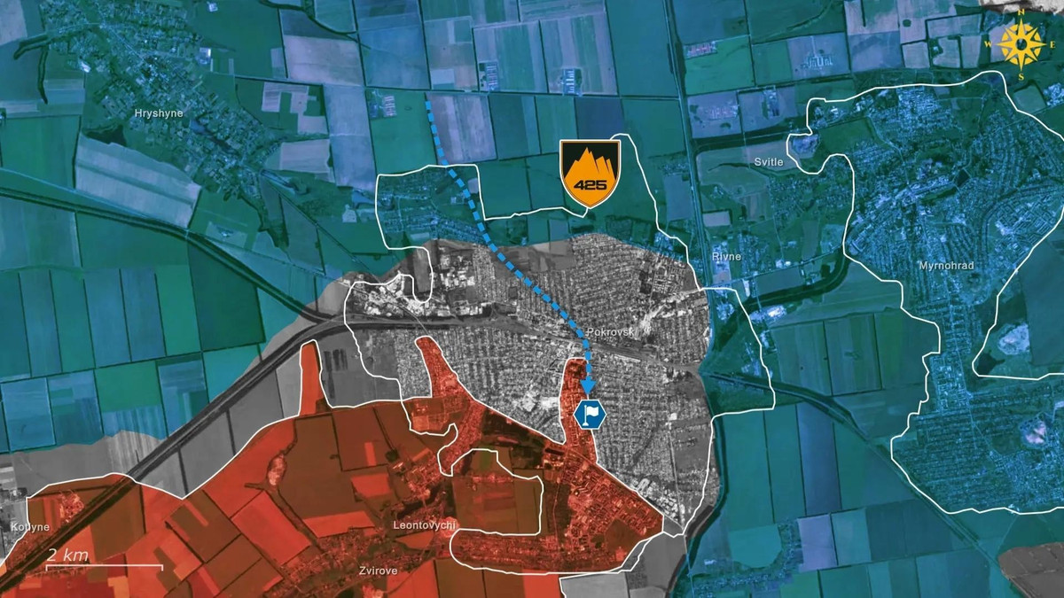 Thứ nhất, mặt trận Pokrovsk có dấu hiệu sụp đổ: Kênh Rybar cho biết, Quân đội Nga (RFAF) đã chiếm được hơn 90% thành phố Pokrovsk, trong khi AFU chỉ còn cầm cự được ở khu đô thị Myrnohrad. Là một trung tâm vận tải của vùng Donetsk, việc thành phố thất thủ sẽ cắt đứt nguồn tiếp tế của Ukraine ở phía đông, trực tiếp làm lộ ra cụm đô thị Sloviansk-Kramatorsk.