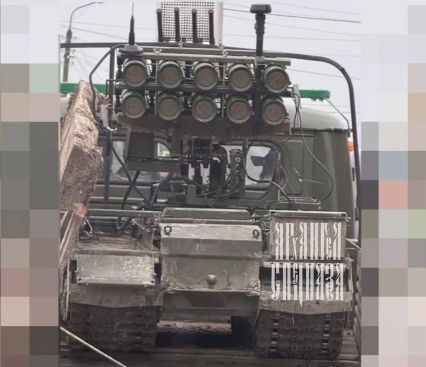 Một UGV được trang bị mô-đun chiến đấu gồm các ống phóng rocket dùng một lần - Ảnh: Defense Express