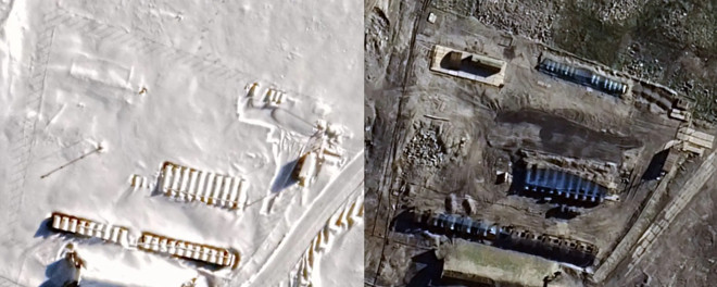 Các bồn chứa nhiên liệu không được trang bị thiết bị chống UAV vào năm 2021 (bên trái) nhưng đã được tăng cường vào tháng 8/2024 (bên phải). Ảnh: Google Earth