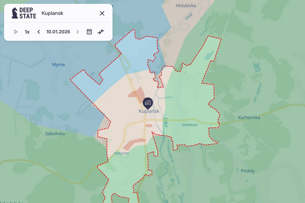 Bản đồ cập nhật tình hình chiến sự ở Kupiansk do chuyên trang Deep State cung cấp, cho thấy khu vực sông Oskil đang nằm trong vùng xám, tức nơi nổ ra các cuộc giao tranh giữa quân Nga và Ukraine.
