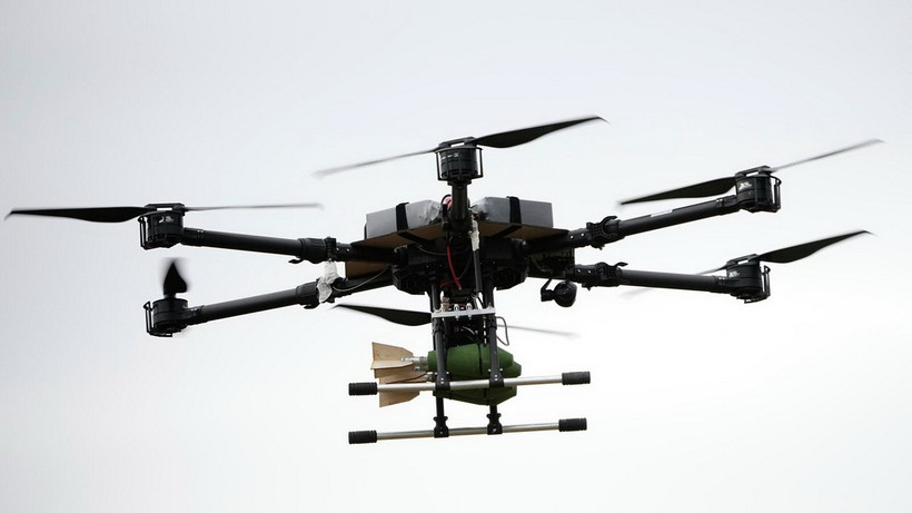Một máy bay không người lái mang bom trong cuộc tập trận chung giữa Nga và Belarus. (Ảnh: AP)