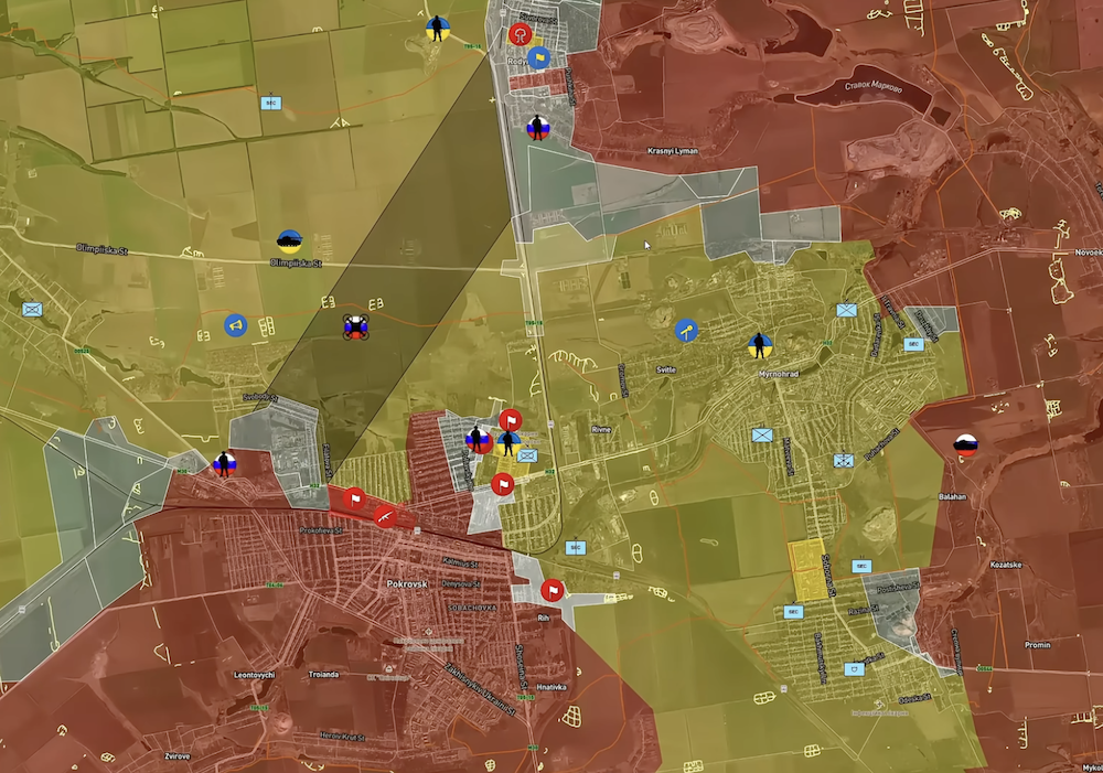 Theo các đoạn video đã được xác thực, quân Nga đã tiến sâu vào khu trung tâm và phía đông nam Pokrovsk, đặc biệt dọc phố Berezina và tuyến đường M30. Một số blogger quân sự Nga còn khẳng định lực lượng này đã kiểm soát được khu đông bắc Pokrovsk và khu vực gần làng Kotlyne.