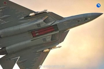 Đây là lần đầu tiên sau 15 năm kể từ khi xuất hiện tại các cuộc triển lãm hàng không, khoang vũ khí bên trong của Su-57 được công khai.