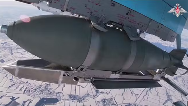 Một quả FAB được lắp UMPK - Ảnh: MINISTÈRE DE LA DÉFENSE RUSSE VIA TELEGRAM