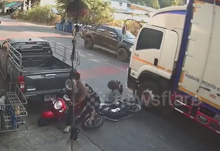 Vụ tai nạn nguy hiểm xảy ra tại khu vực Bung Worakit, thuộc Si Racha, tỉnh Chonburi, Thái Lan và đã được camera giám sát ghi lại toàn bộ diễn biến.