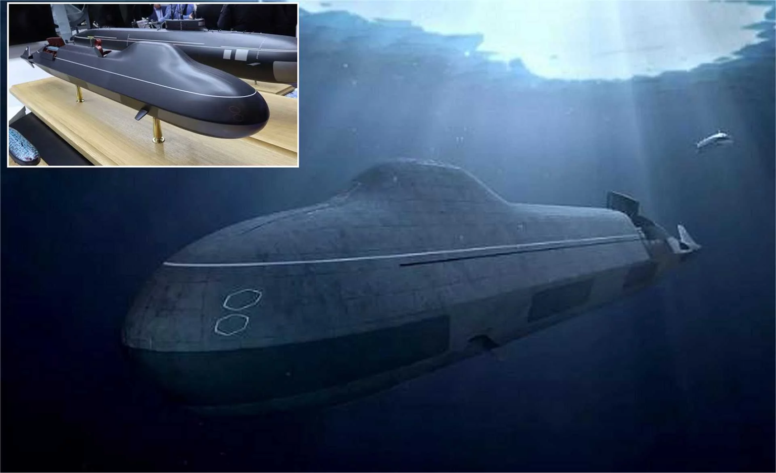 Bản vẽ minh họa của nghệ sĩ về tàu ngầm hạt nhân chiến lược thế hệ 5, thể hiện thiết kế gọn gàng, dáng thấp với tính khí động học tiên tiến và các bệ phóng thẳng đứng tích hợp, phản ánh tầm nhìn của Nga về lực lượng răn đe chiến lược dưới nước trong tương lai - Ảnh: Mạng xã hội Nga