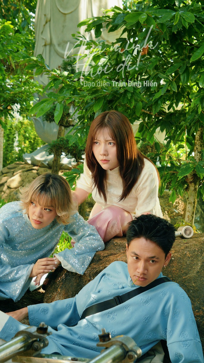 Đoàn Thế Vinh cùng diễn viên Uyển Ân và Michelle Lai trong phim “Nhà mình đi thôi”. (Ảnh do nhân vật cung cấp)