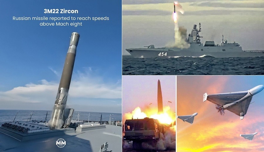 02 tên lửa siêu thanh Zircon: Loại vũ khí có tốc độ cực cao và quỹ đạo bay phức tạp.