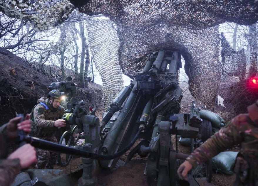 Binh sỹ Ukraine chuẩn bị khai hỏa lựu pháo vào vị trí của Nga. Ảnh: AP