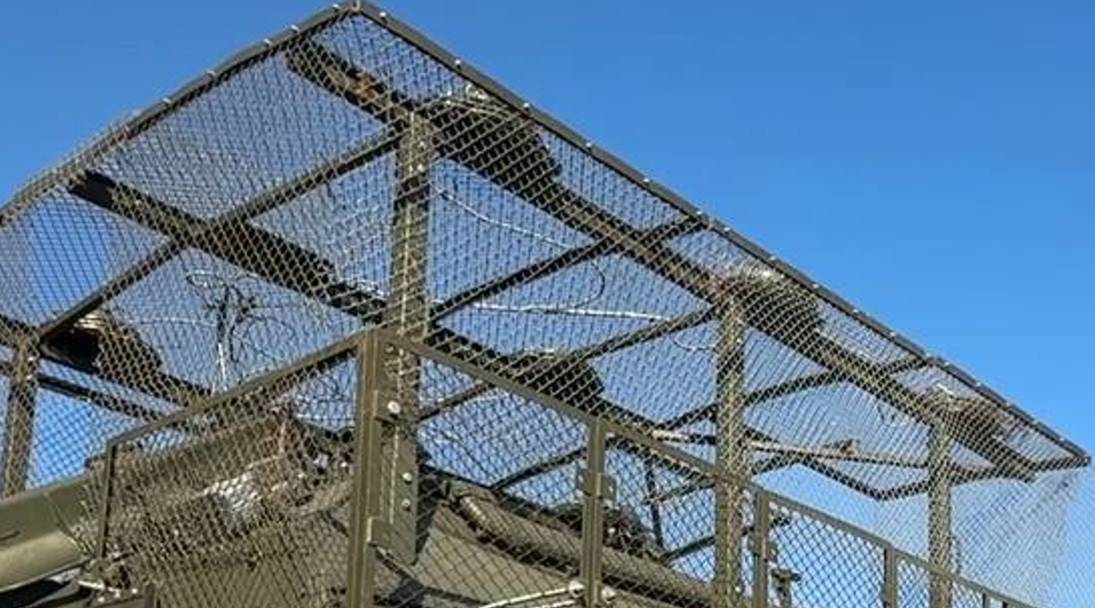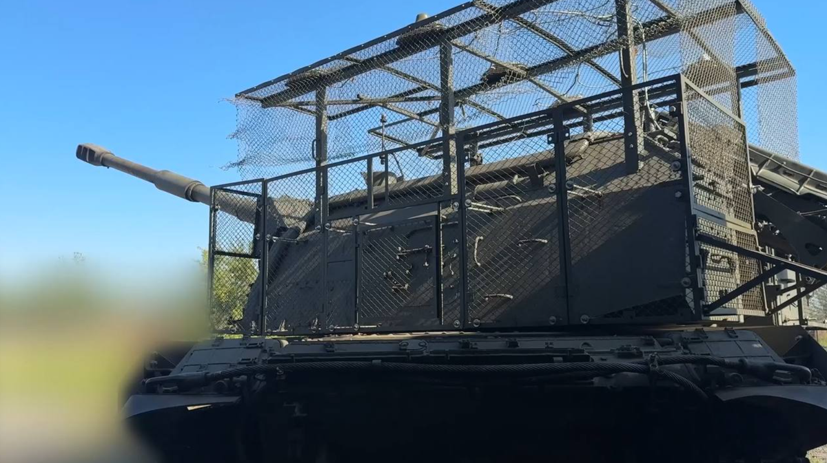 Nhưng thực tế, những chiếc lồng này được thiết kế để bảo vệ thụ động khẩu pháo tự hành 152 mm 2S19M2 Msta-S mới trước các cuộc tấn công của máy bay không người lái FPV mang thuốc nổ. Đây chính là một mối đe dọa ngày càng gia tăng đối với các hệ thống pháo binh Nga hoạt động trong tầm bắn của lực lượng Ukraine. Ảnh: @defence-blog.
