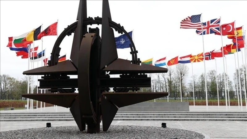 Biểu tượng và cờ của các nước NATO tại trụ sở ở Brussels, Bỉ. Ảnh: Anadolu.