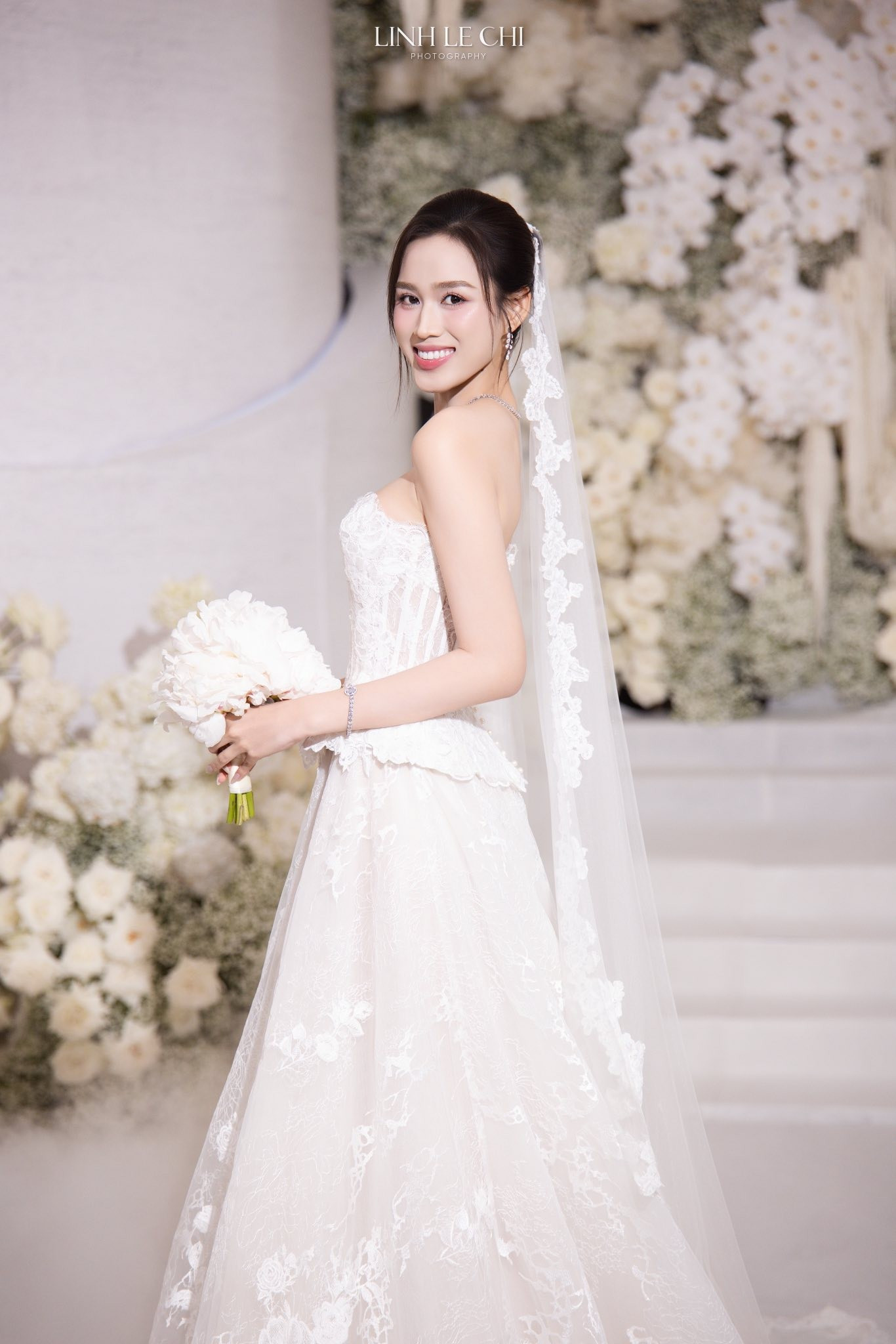 Trong giây phút bước trên lễ đường, thương hiệu thiết kế đã dành trọn tâm huyết để tạo nên một thiết kế xứng đáng với vẻ đẹp và khí chất của Hoa hậu Đỗ Thị Hà. Bộ váy được tiết lộ may hoàn toàn thủ công, qua bàn tay của 10 người thợ, trong suốt 4 tháng qua.