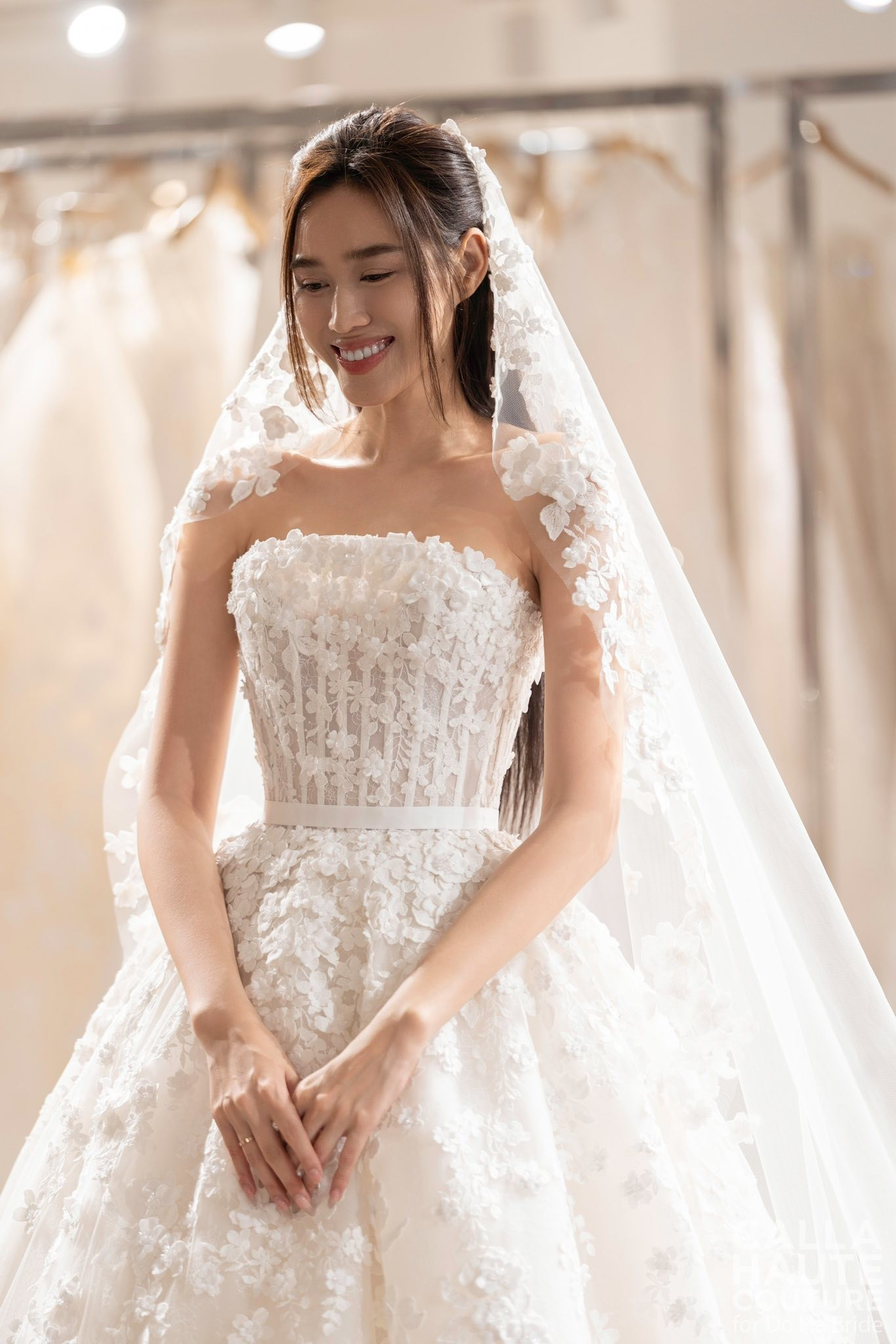 Các mẫu váy cưới được NTK tiết lộ là những tác phẩm được thiết kế riêng cho Hoa hậu Đỗ Thị Hà, may đo thủ công trong 4 tháng, đến từ các thương hiệu Việt Nam.