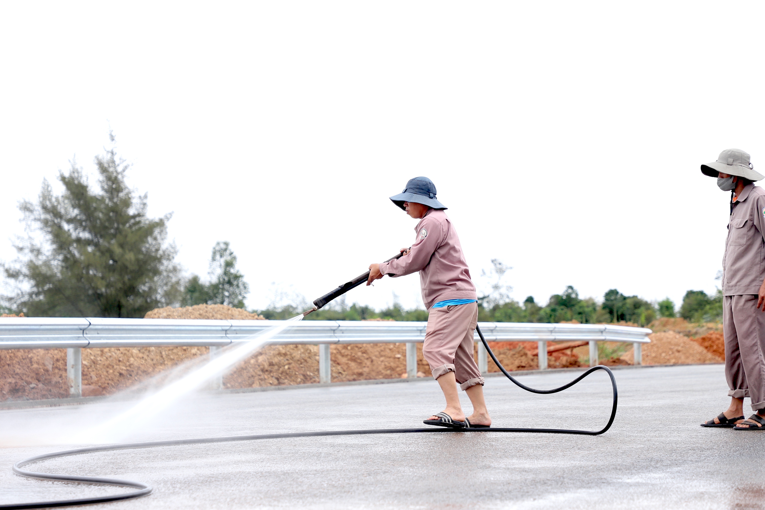 Ông Nguyễn Cường, Giám đốc điều hành dự án, Công ty TNHH Tập đoàn Sơn Hải cho biết: "Trên công trường, nhà thầu huy động tối đa máy móc, nhân lực, tổ chức thi công “3 ca, 4 kíp” xuyên ngày đêm để bám tiến độ. Đến thời điểm này, toàn bộ khối lượng xây lắp do nhà thầu đảm nhận đã hoàn thành, hệ thống biển báo, an toàn giao thông được lắp đặt đồng bộ".