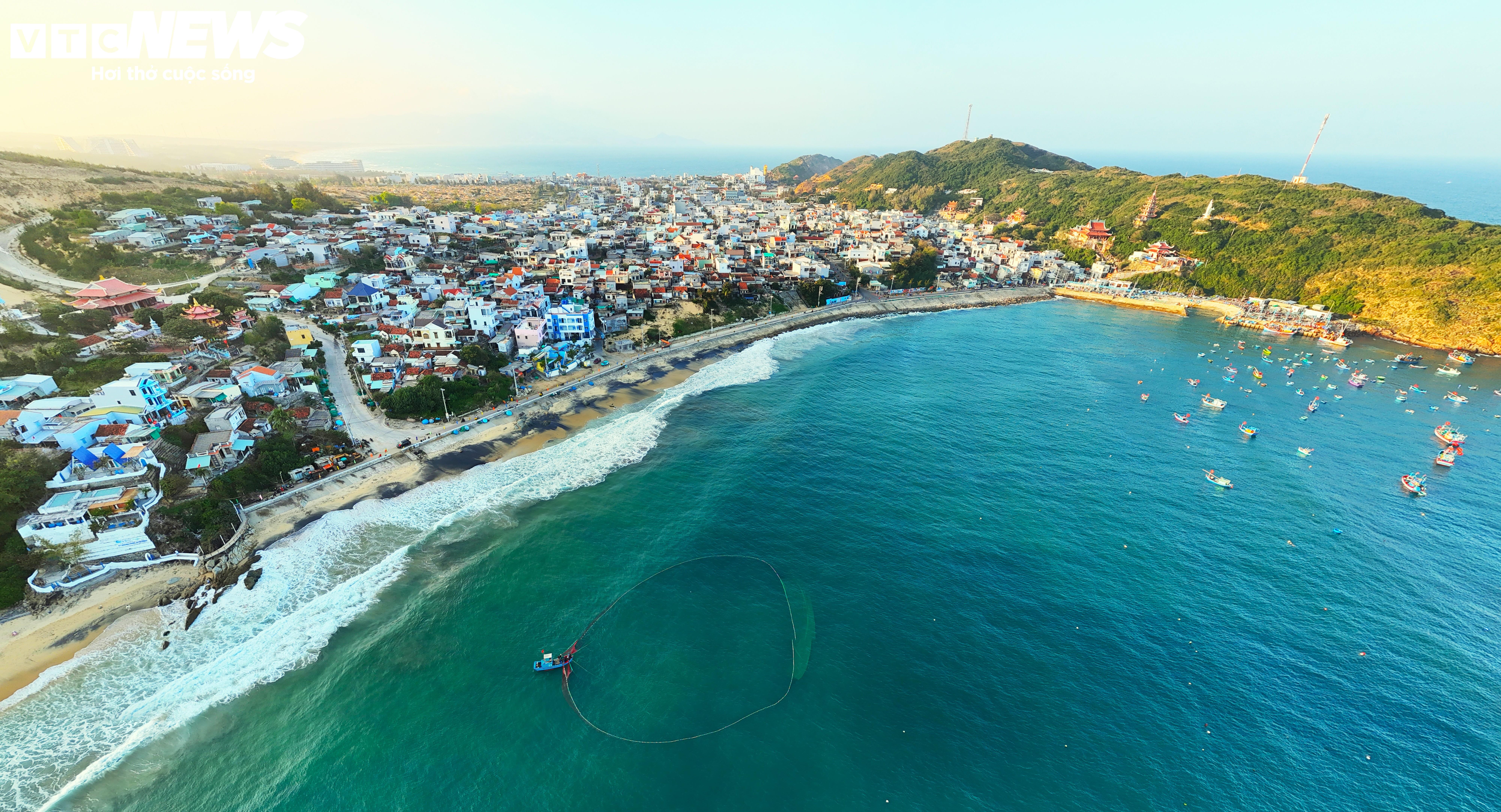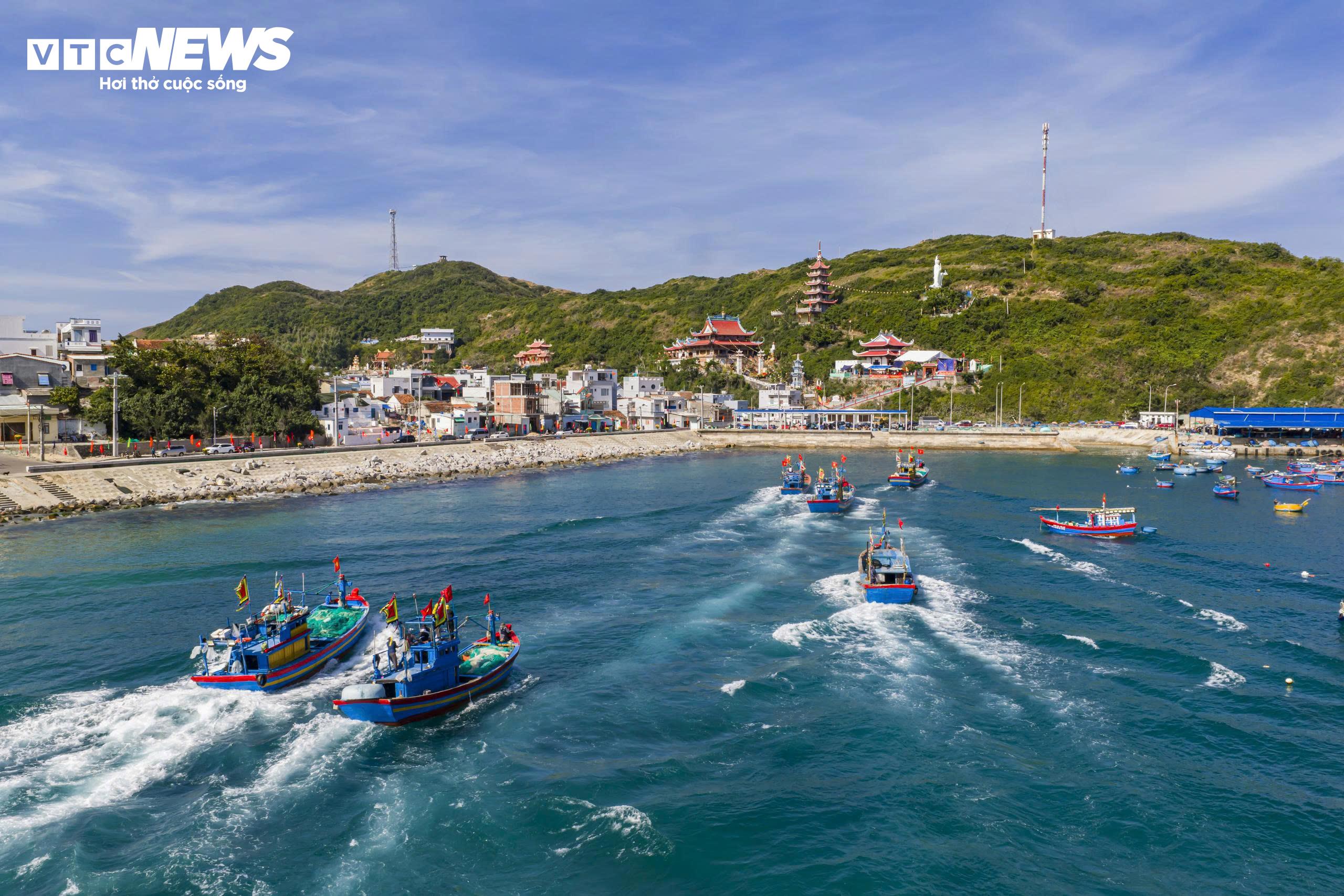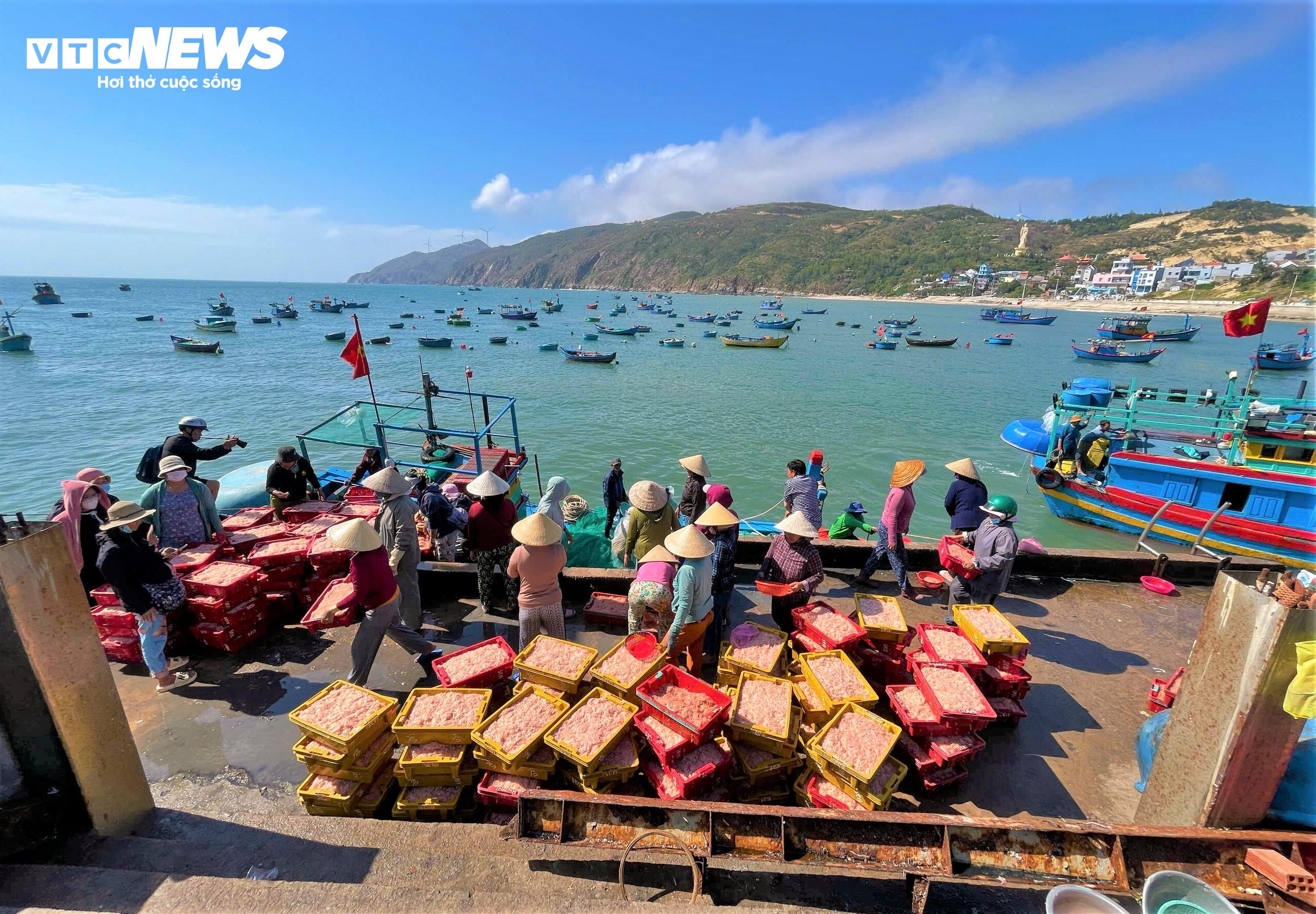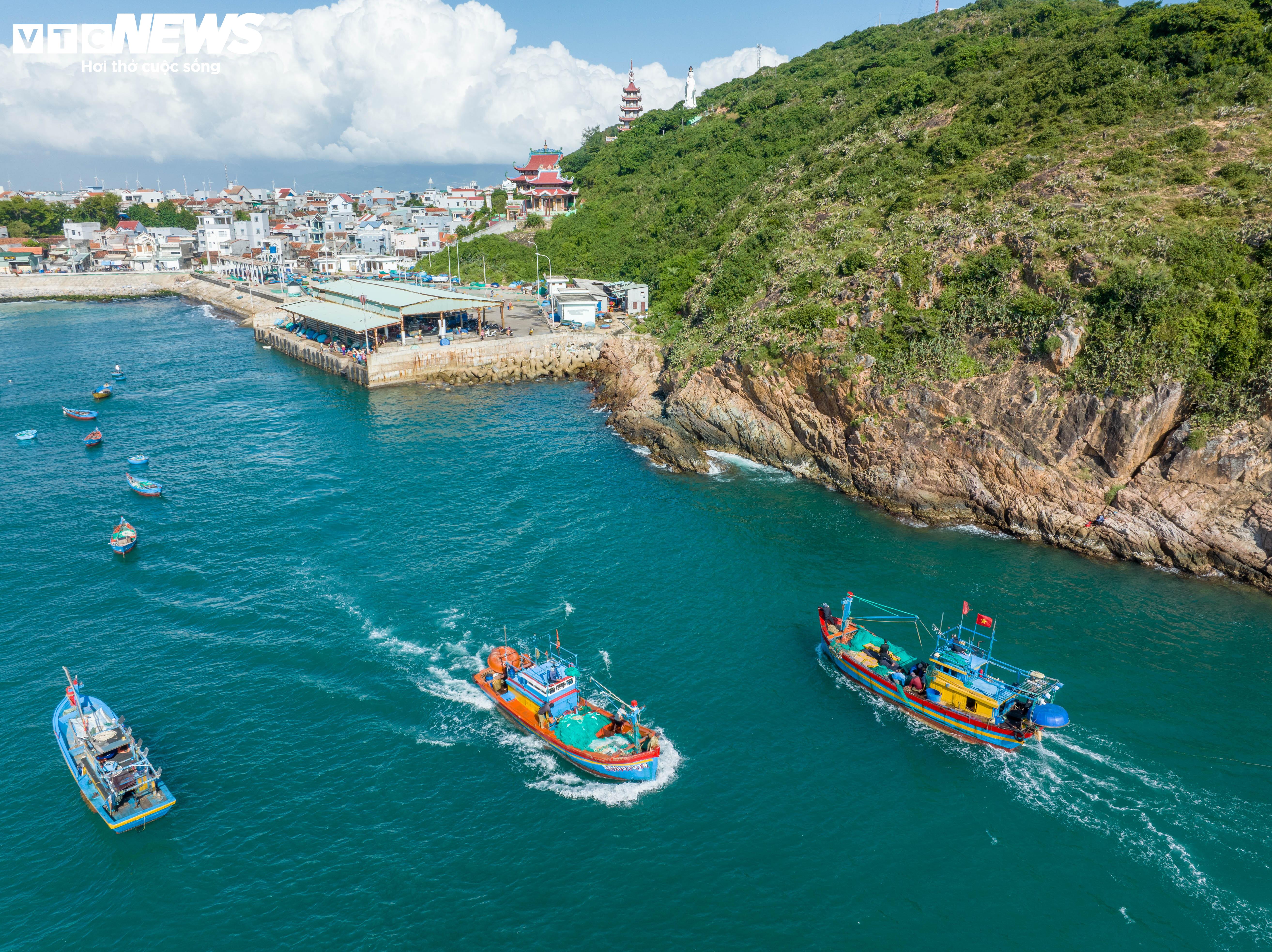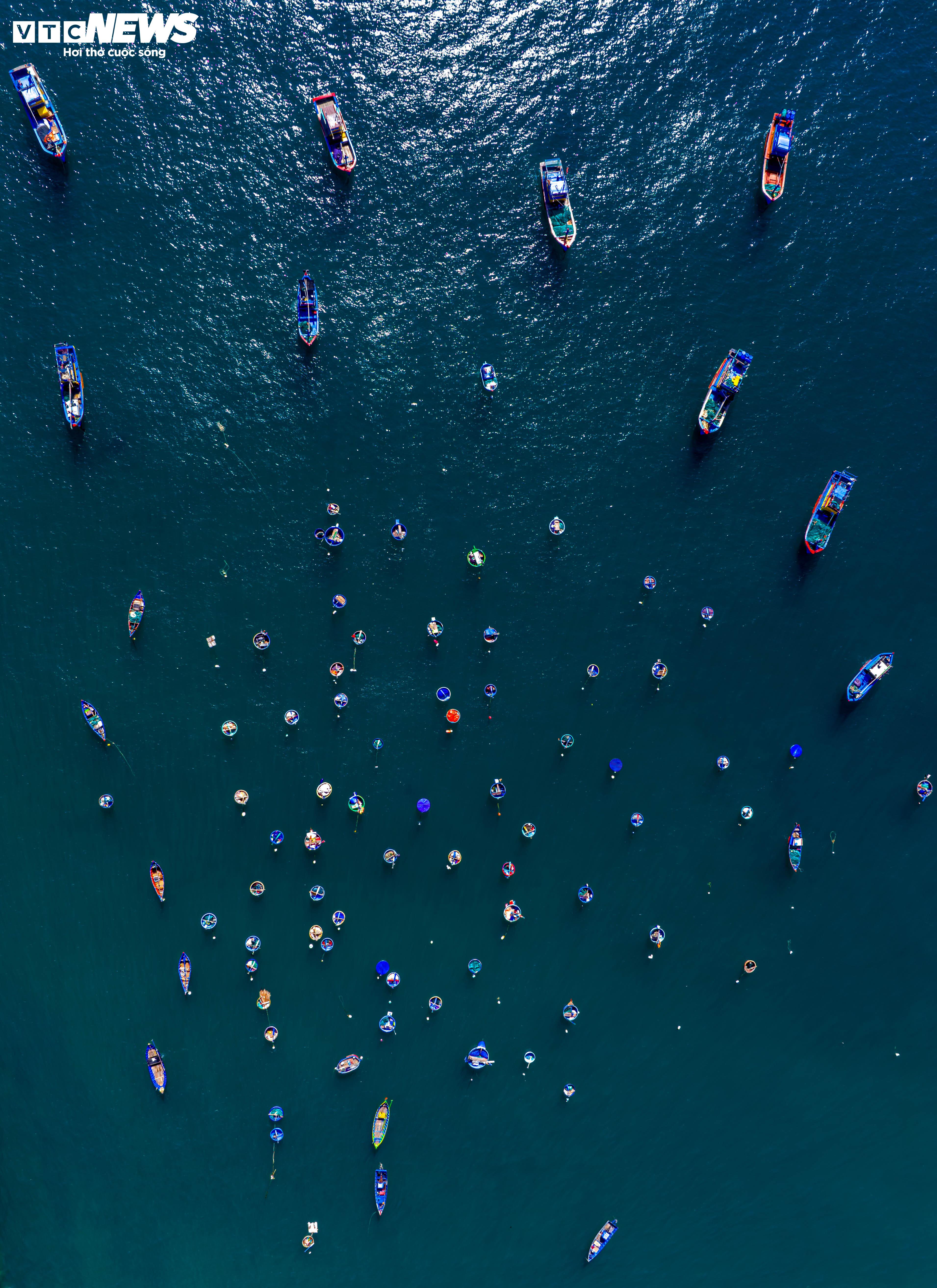 Khi vào mùa, hình ảnh những chiếc tàu qua lại tấp nập, những thuyền thúng neo đậu trên biển... khiến bức tranh làng chài trở nên nhộn nhịp, sống động.
