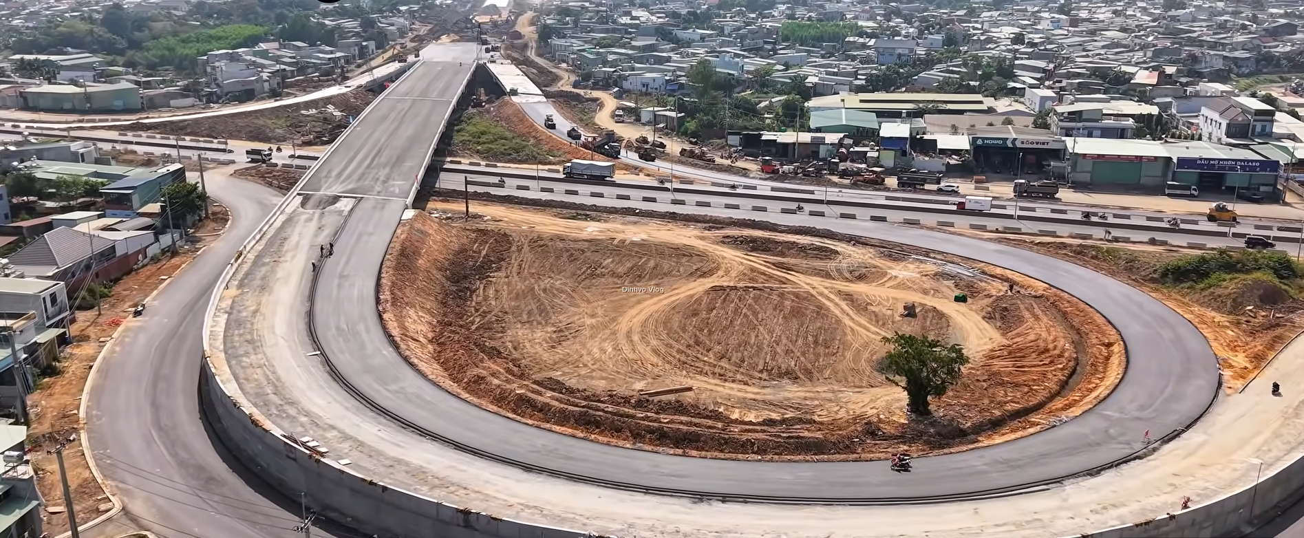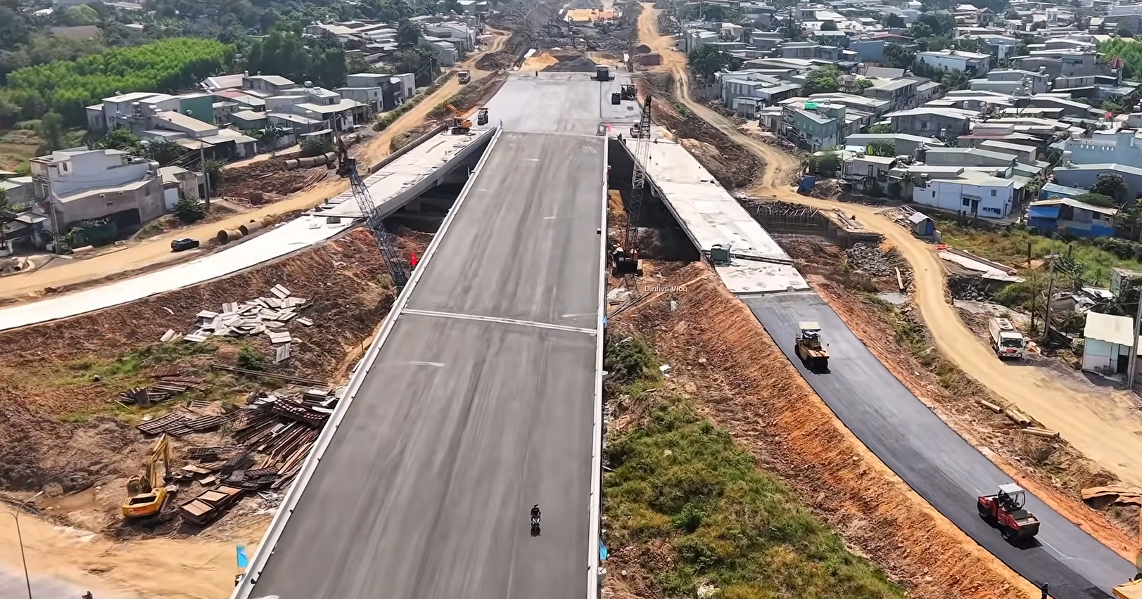 Hệ thống cầu vượt đường Võ Nguyên Giáp đang được trải nhựa. Ảnh: Đình Võ.