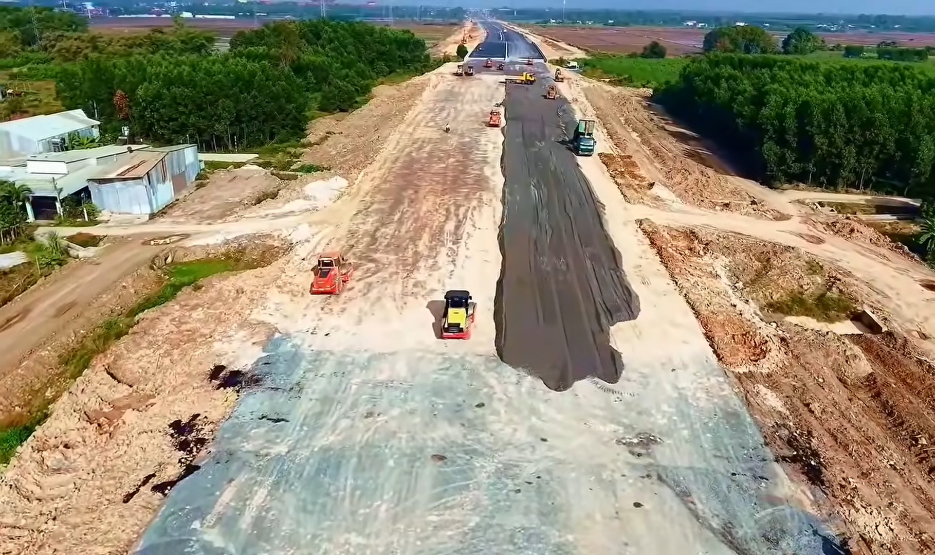Ở những đoạn khác, đơn vị thi công đang khẩn trương trải nhựa mặt đường. Ảnh: Đinh Võ.