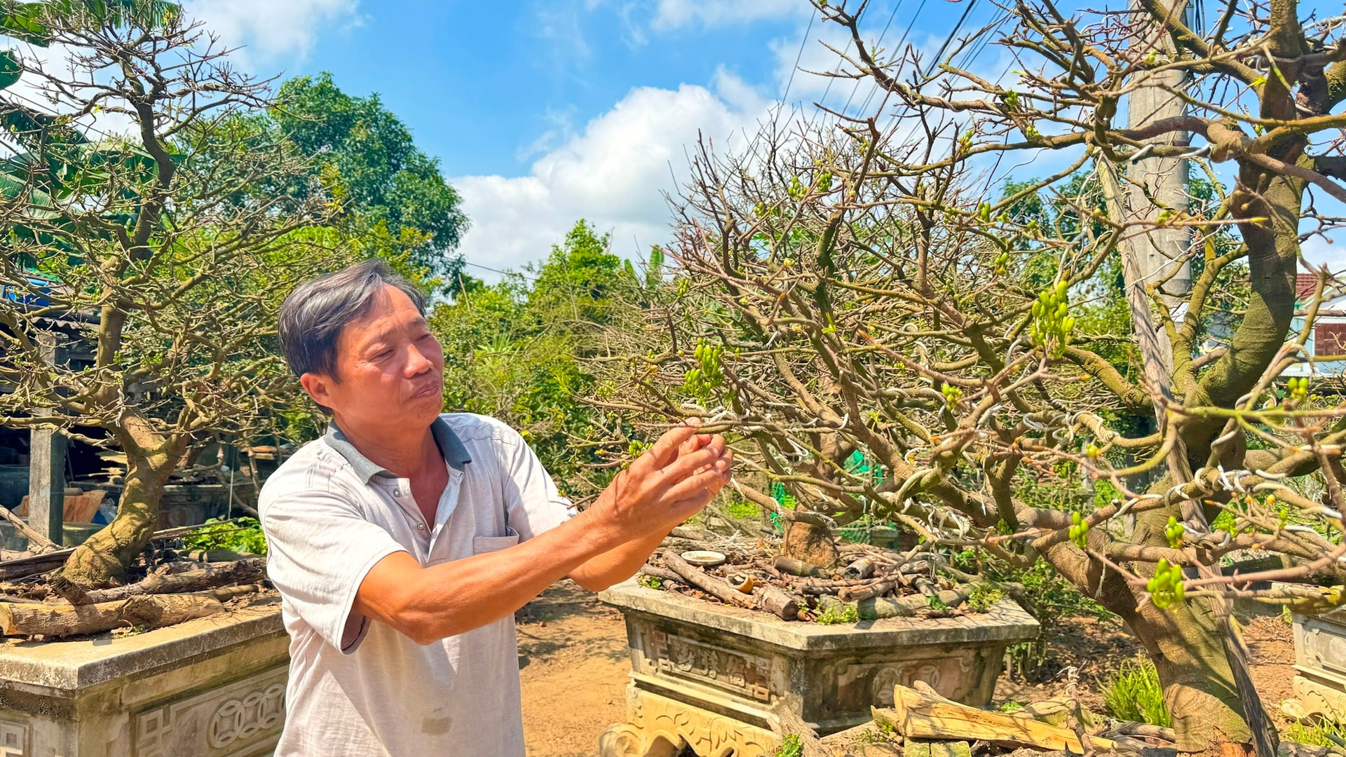 “Đây là cây mai gắn bó với gia đình qua nhiều thế hệ. Hơn nữa, dáng thế và tuổi đời của cây rất hiếm, nên gia đình tôi không vội sang nhượng”, ông Tân nói.