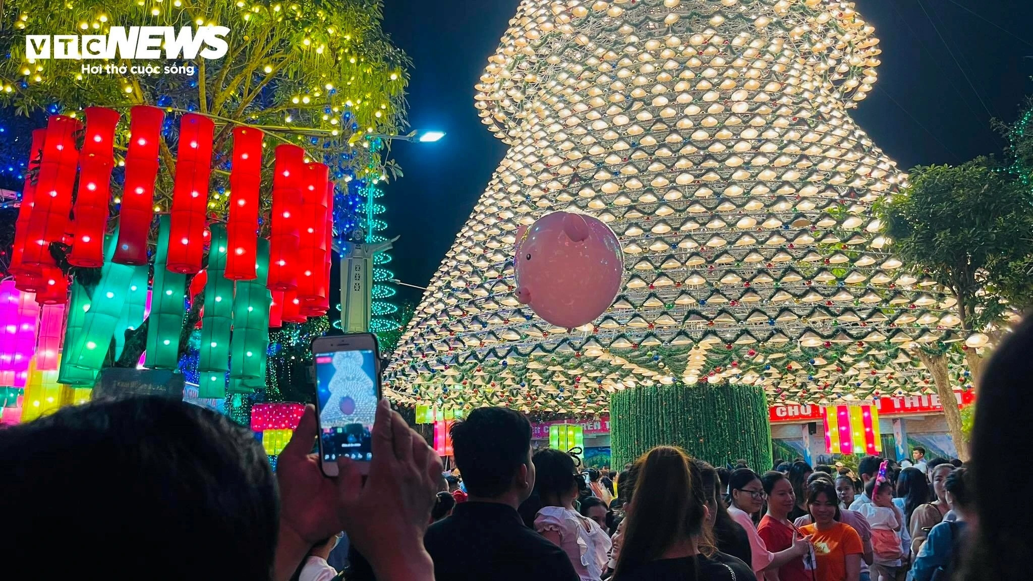 Giáo xứ Hà Phát ghi nhận hàng nghìn lượt khách đến chụp hình với cây thông khổng lồ mỗi ngày.
