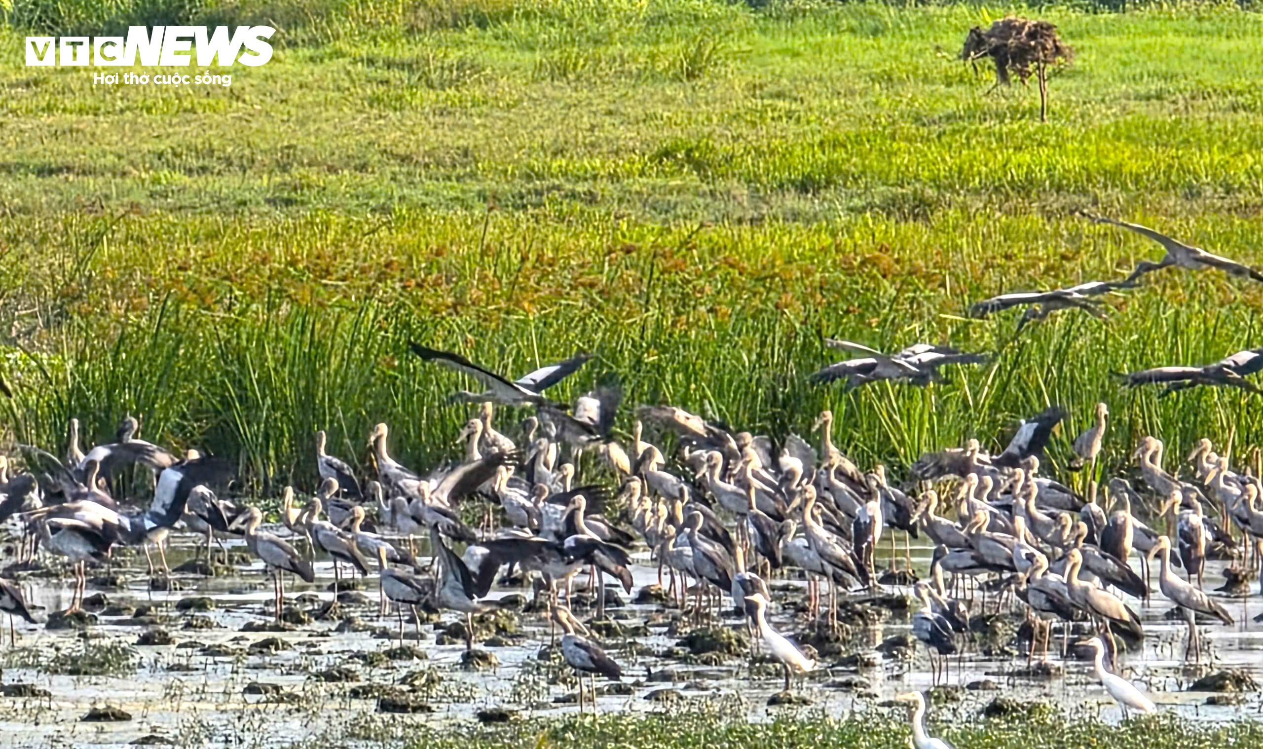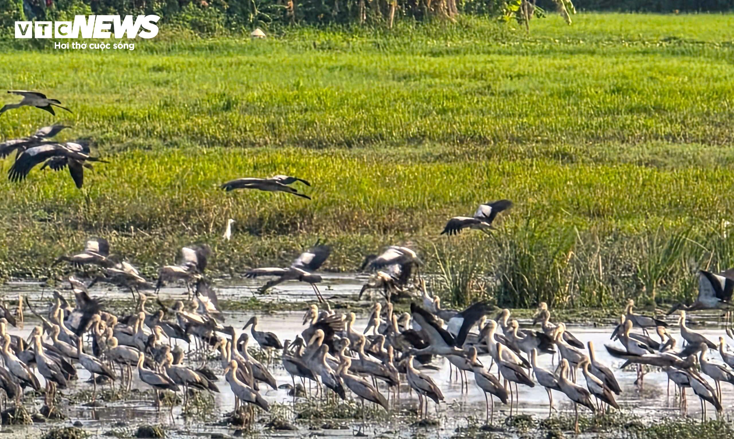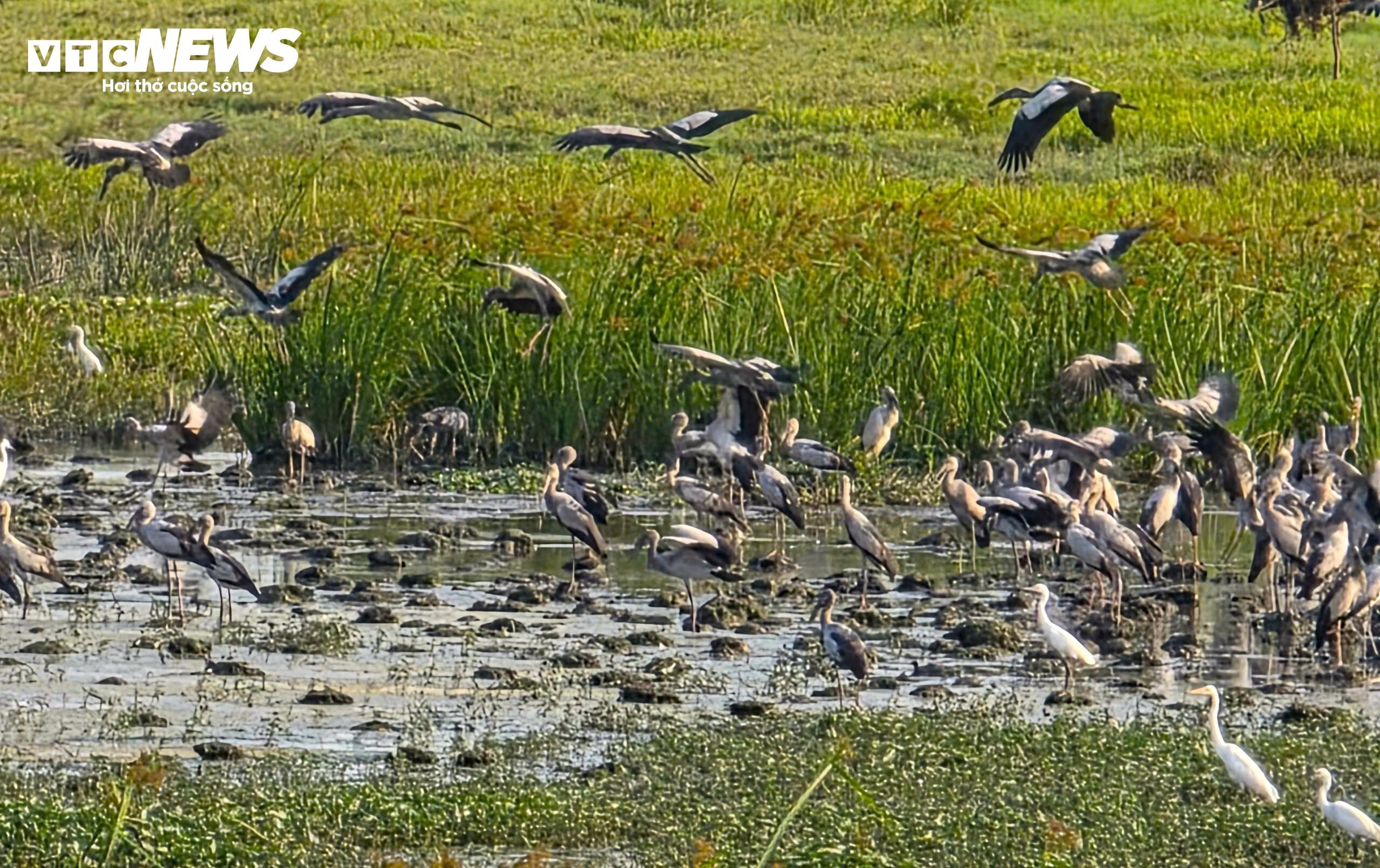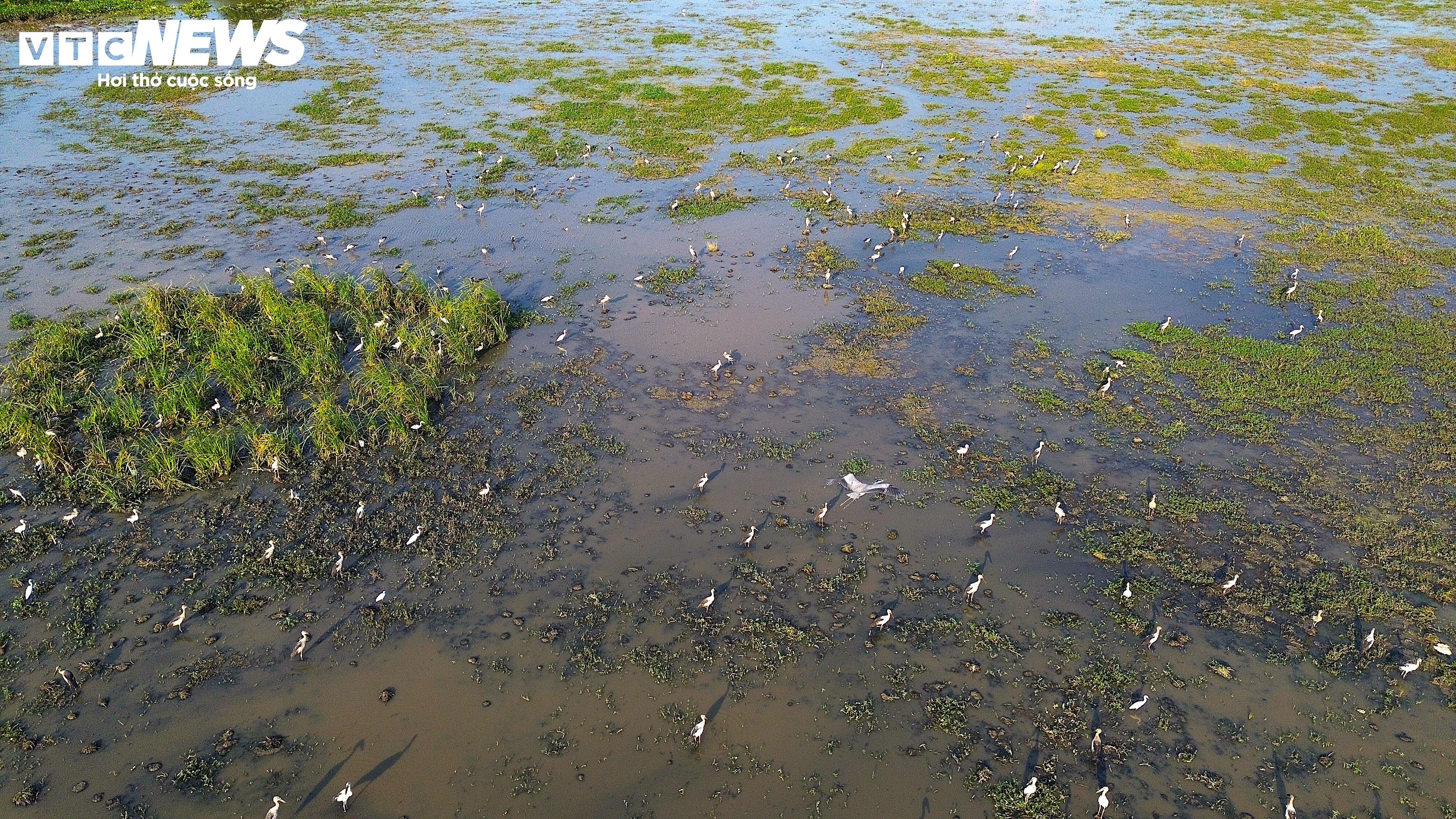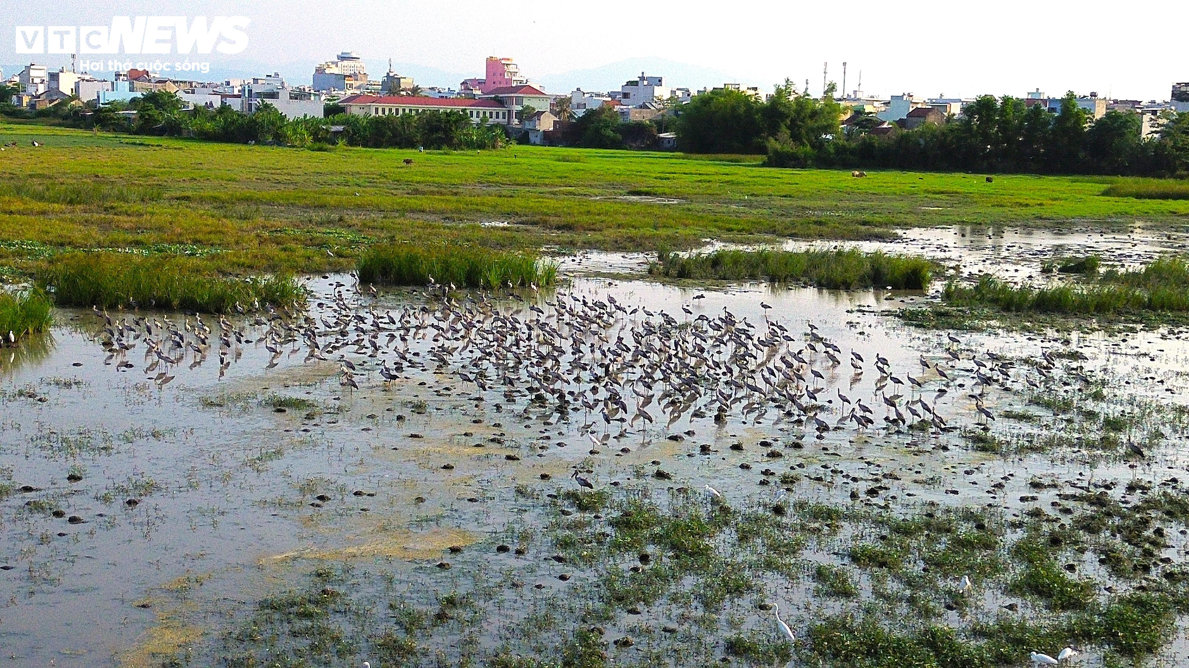 Theo ghi nhận, mỗi ngày đàn cò nhạn kiếm ăn tại cánh đồng bỏ hoang trên đường Trần Phú, chủ yếu là giun, dế, châu chấu và nhiều nhất là ốc bươu vàng.