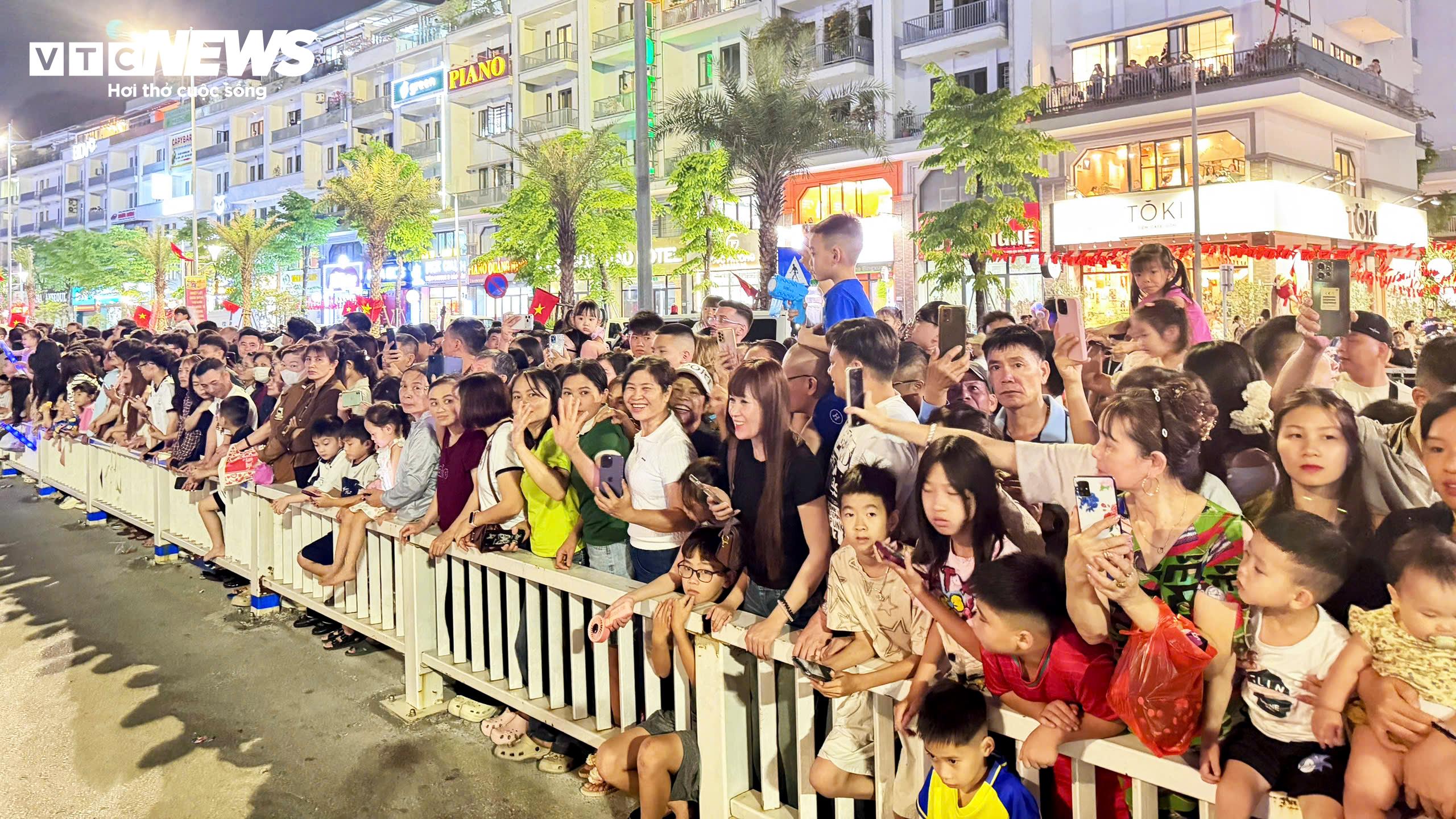 Đông đảo người dân, du khách hào hứng khi đoàn diễu hành với các vũ công đi qua.