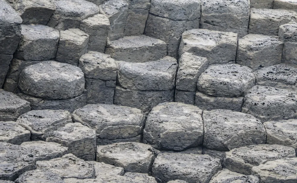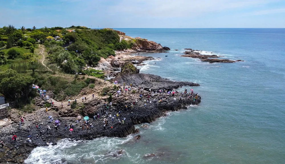 Di tích là tập hợp các cột đá bazan hình lăng trụ, giống như những chiếc đĩa xếp chồng lên nhau dọc bờ biển trải dài hàng ngàn m2, các cột đá bazan tạo thành hai mũi nhô ra biển.