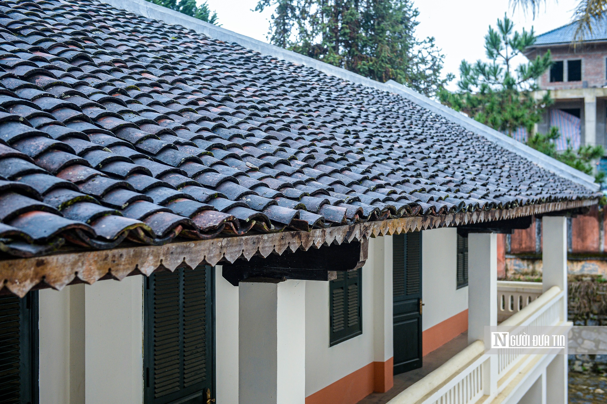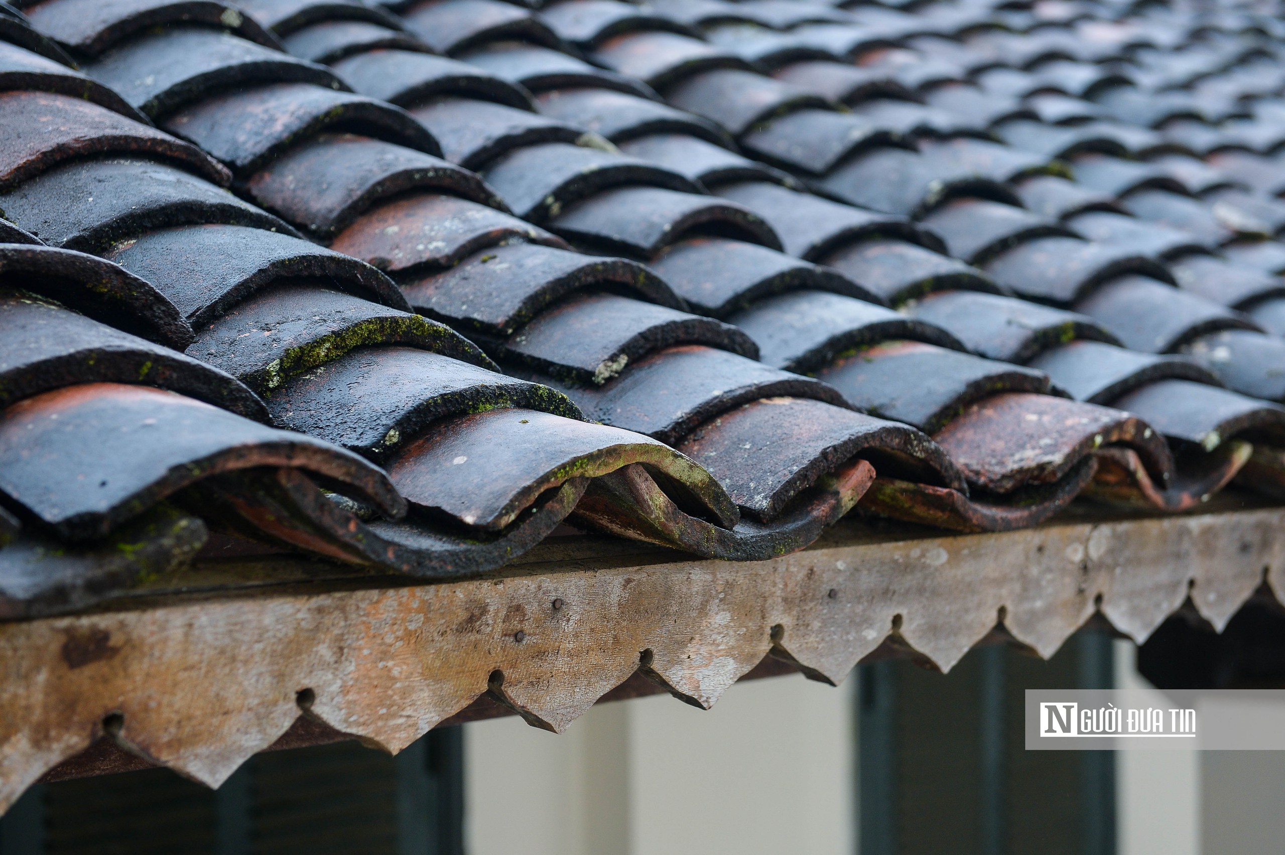 Đơn vị thi công đã hạ giải, làm sạch và thay thế những viên ngói hư hỏng, nhưng vẫn giữ lại tối đa ngói cũ để bảo toàn nét cổ kính, nhuốm màu thời gian cho phần mái.