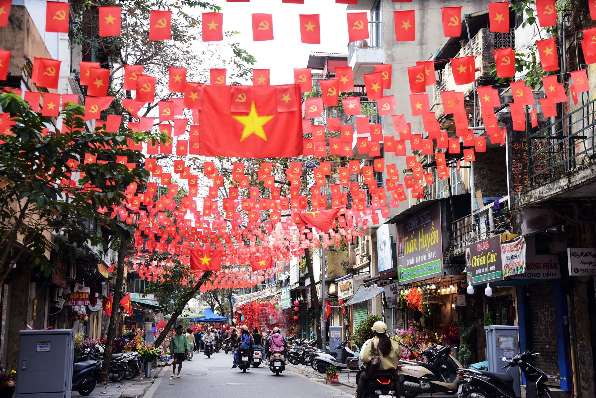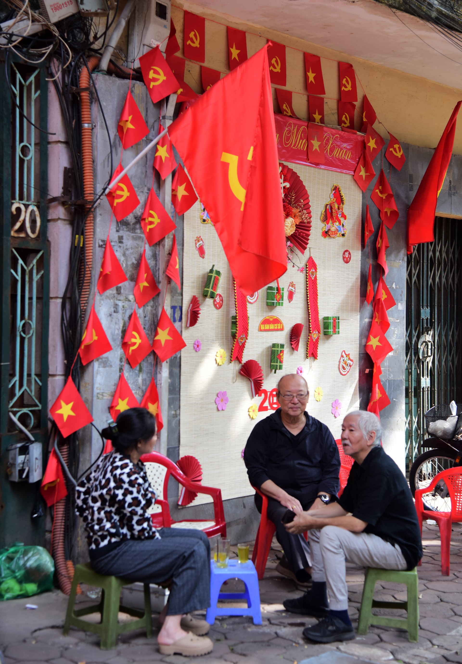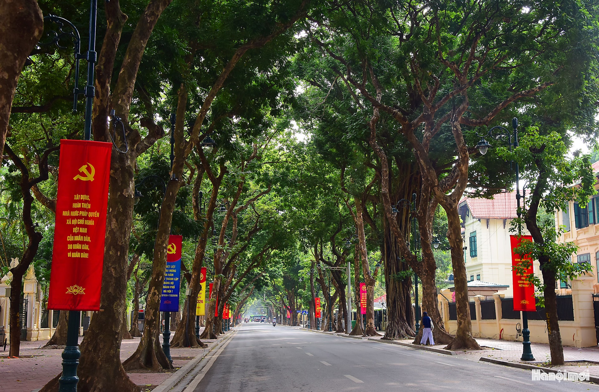 Phố phường Hà Nội bình yên, rực màu cờ Tổ quốc.