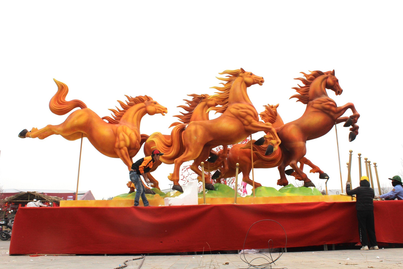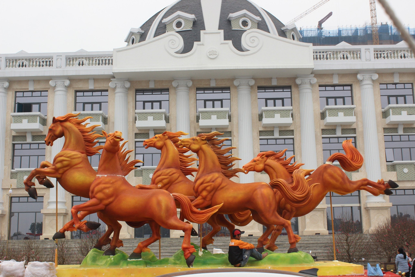 Không chỉ có cụm “Ngũ mã” ở quảng trường trung tâm, không khí năm Ngọ còn hiện diện ở nhiều tiểu cảnh khác trong thành phố. Tại một số khu vực, các mô hình ngựa trắng bằng khung thép – vải được dựng lên, dáng đứng thanh thoát, nhẹ nhàng hơn, mang phong vị trang trí Tết quen thuộc.