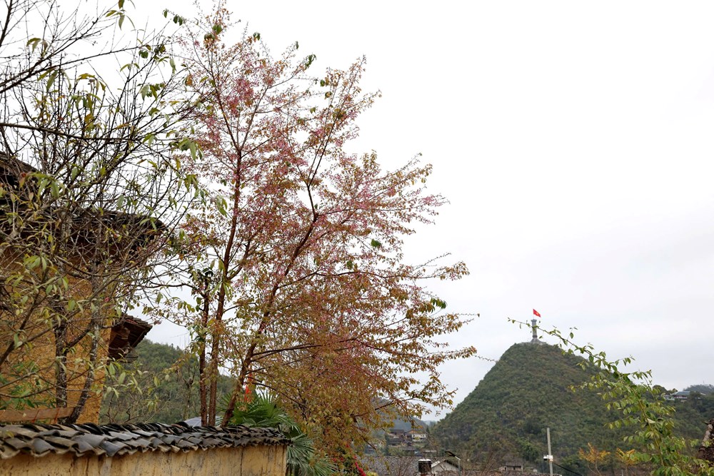 Sắc hồng dịu dàng ấy điểm xuyết bên những nếp nhà trình tường cổ kính của đồng bào Lô Lô, tạo nên một sự hòa quyện tuyệt mĩ giữa thiên nhiên.