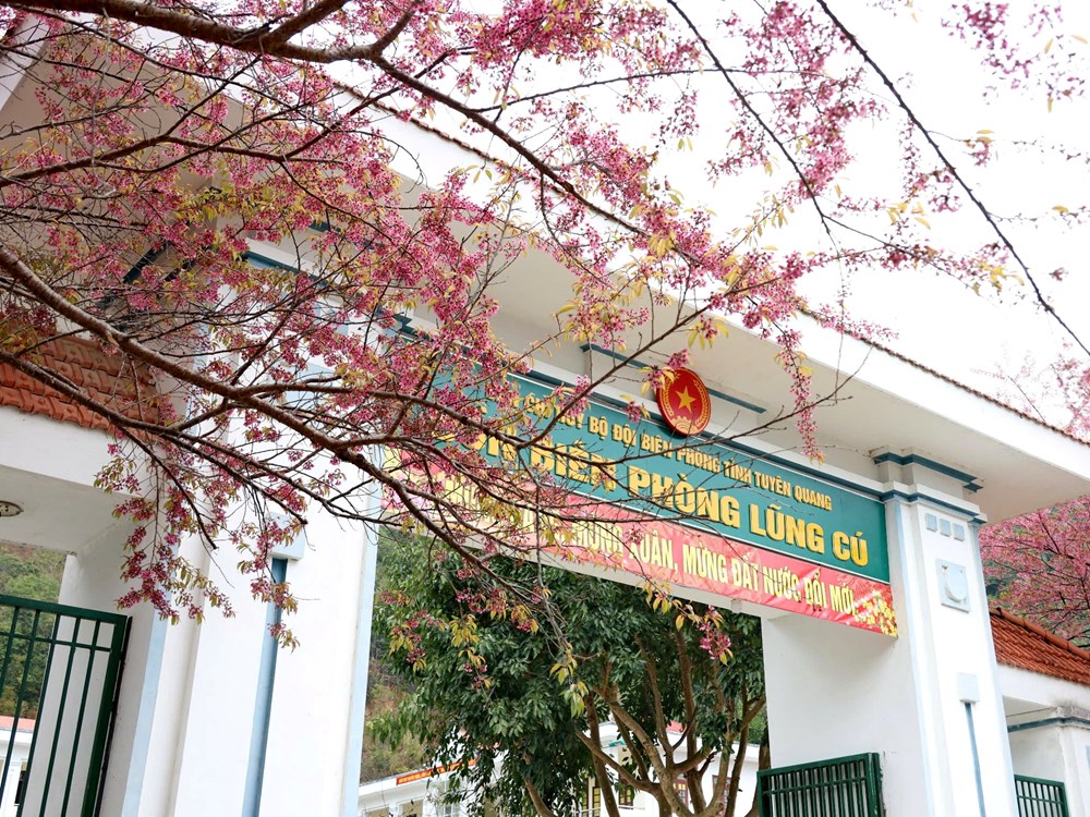 Hoa anh đào tại Đồn biên phòng Lũng Cú và trường mầm non Lũng Cú