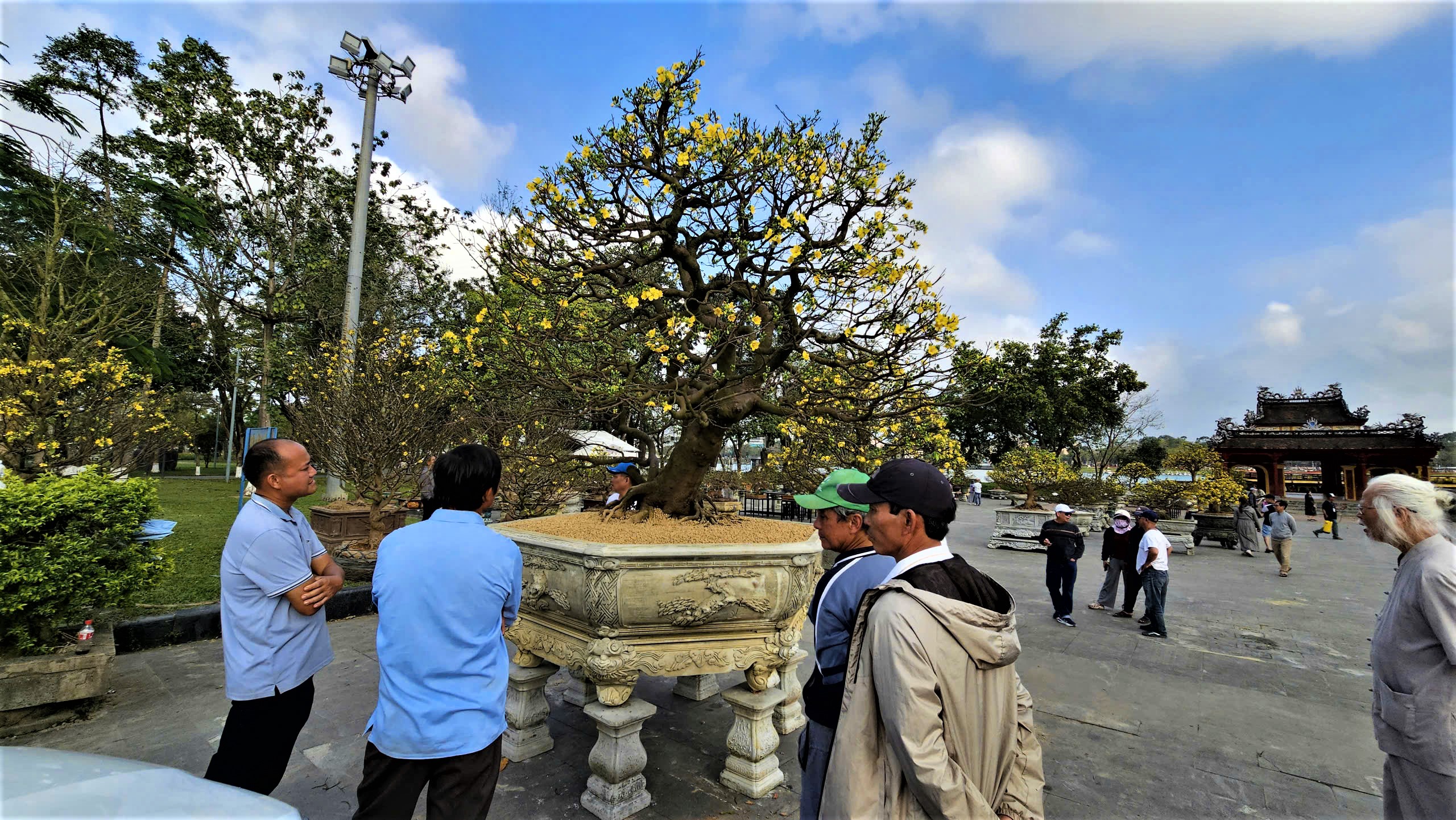 Hàng trăm gốc mai cảnh, mai thế độc lạ đã hội tụ về công viên Thương Bạc (quận Phú Xuân, TP Huế).