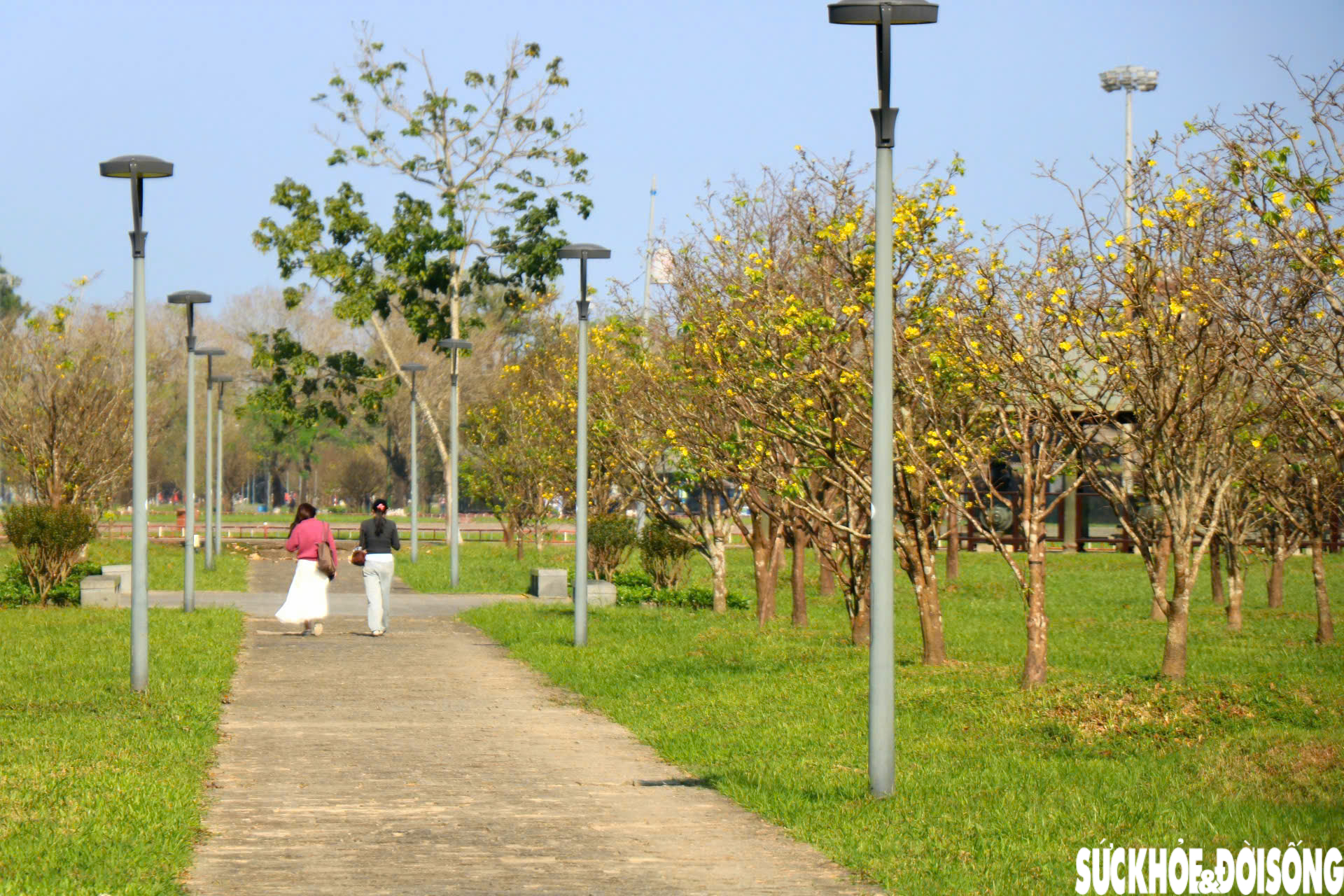 "Năm nay mai nở hơi sớm, tuy nhiên vẫn sẽ kéo dài đến dịp Tết Nguyên đán. Trước đó, từ 15/11 âm lịch, chúng tôi tiến hành trảy lá nhằm giúp mai kịp bung nở đúng mùa. Hàng ngày, công nhân đều chăm sóc cây, hái lá hư, thúc cây phát triển ổn định, bên cạnh đó còn cắt tỉa, chỉnh trang mặt cỏ để tạo điểm nhấn, phục vụ vui Tết đón xuân cho du khách và người dân", Lãnh đạo Trung tâm Công viên cây xanh Huế nói.