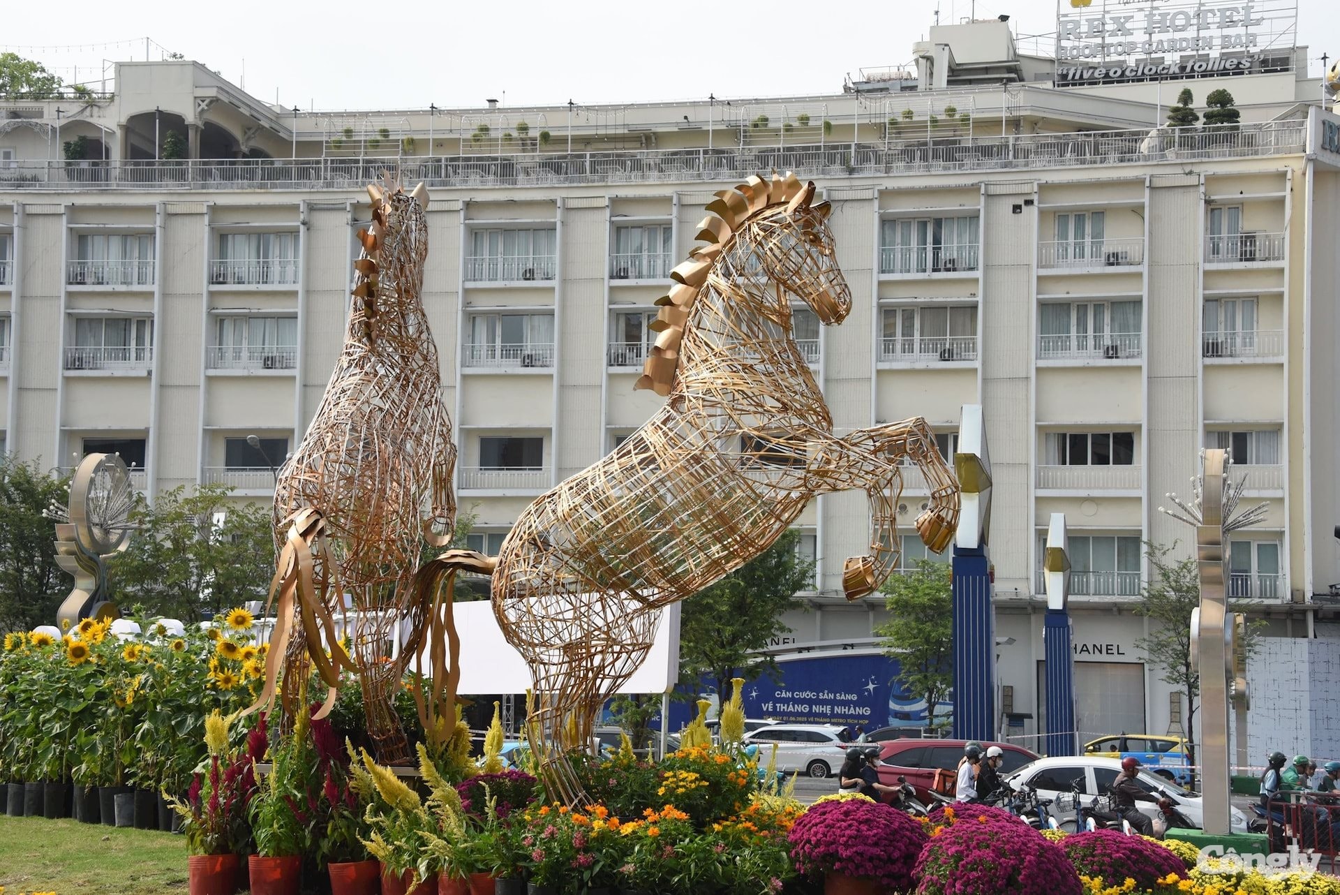 Ở Phố đi bộ Nguyễn Huệ, đường hoa năm nay nổi bật với hàng chục linh vật ngựa được thiết kế và thi công công phu khắp các đại cảnh và tiểu cảnh.