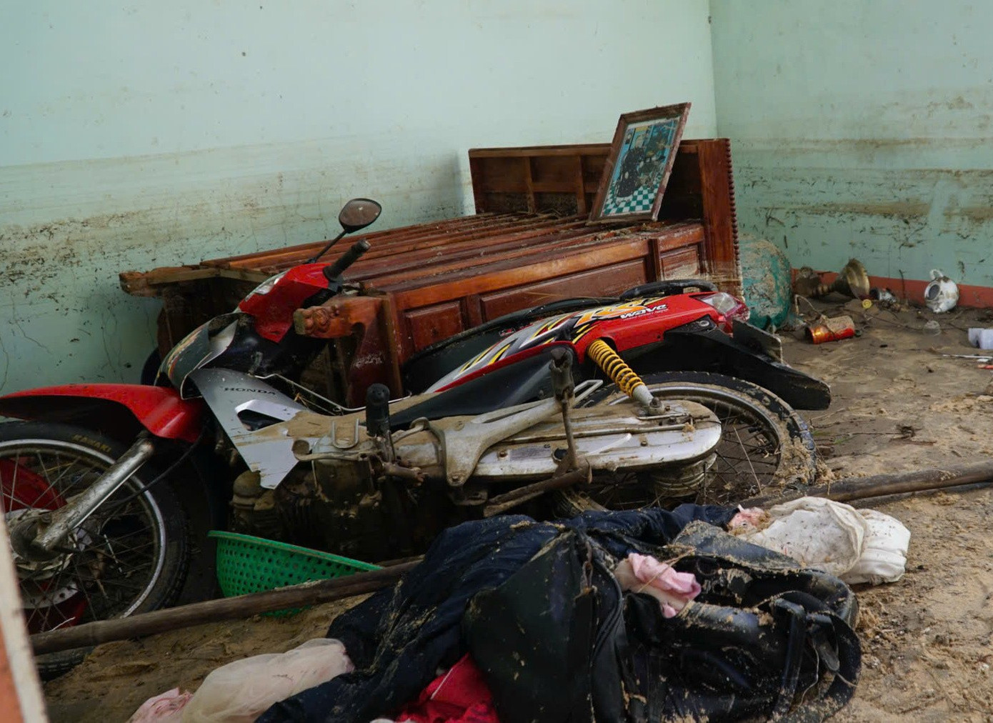 Ở gần đó, ông Đỗ Thành An (52 tuổi) cùng gia đình ngồi ngoài sân, bởi căn nhà đã bị gió thổi tốc hết 300m2 mái tôn. Ông chia sẻ, giờ trong nhà không còn gì hết, vì tối qua nước dâng cao hơn 1m, cuốn bay hết các vật dụng trong nhà. Ông An xúc động kể, ba bố con đã chuẩn bị cẩn thận để đón bão nên ở lại nhà vì không nghĩ nước sẽ dâng cao đến vậy.