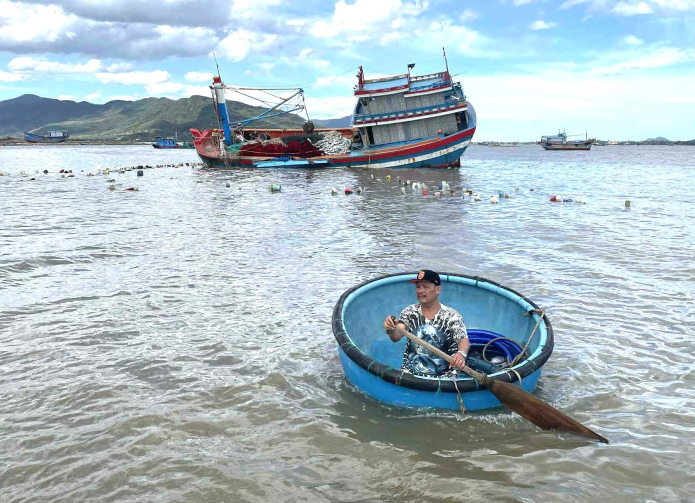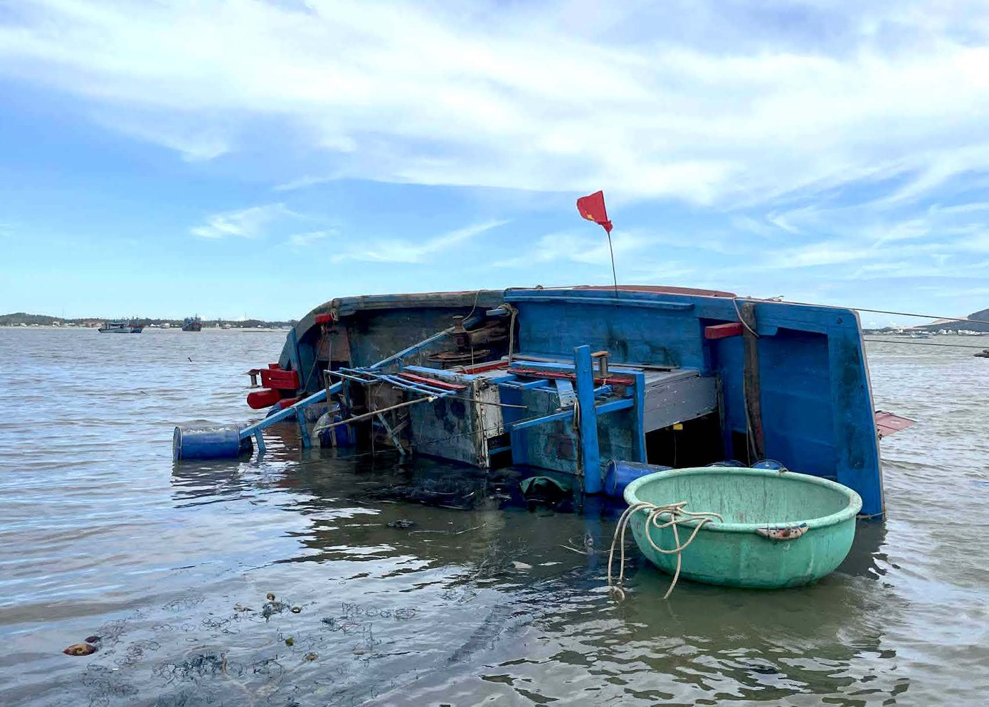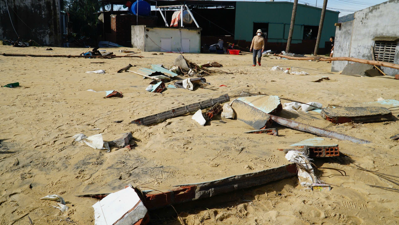 Cơn bão dữ đi qua, để lại phía sau làng chài ven biển Đề Gi (xã Đề Gi) khung cảnh tan hoang chưa từng thấy. Nhà cửa bị cát biển vùi lấp, hàng chục tàu thuyền bị sóng đánh chìm, hư hỏng nặng, ngư lưới cụ mất trắng, những người dân gắn bó cả đời với biển chỉ biết nghẹn ngào nhìn lại nơi từng là tổ ấm. Giờ bà con đang cố gắng thu dọn, khắc phục lại chút gì còn sót.