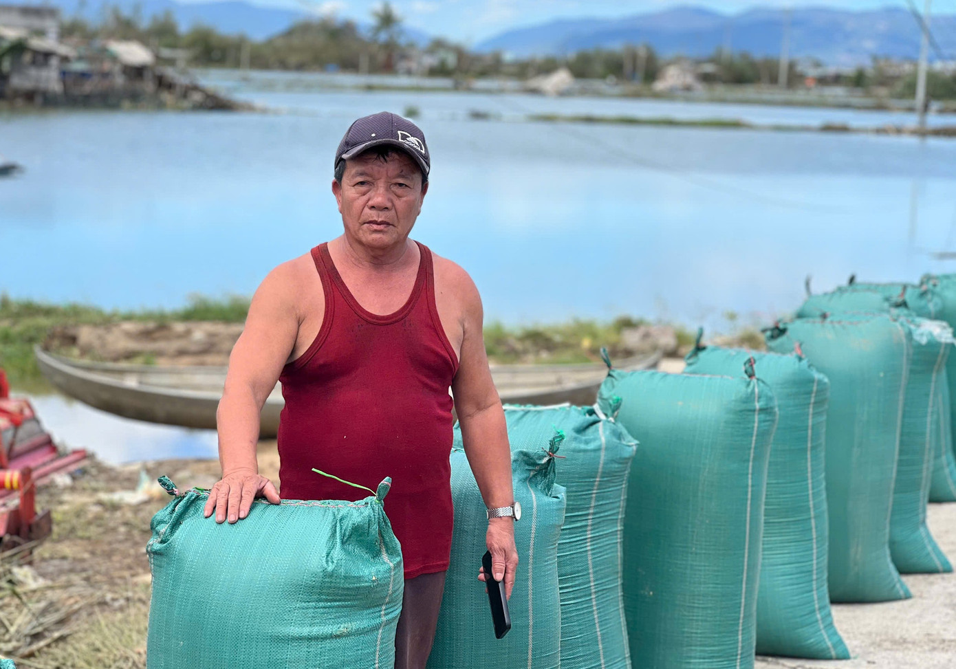 Ở thôn Quảng Vân (xã Tuy Phước) ước tính có hàng trăm hộ dân bị ảnh hưởng, ngập do bão. Nước rút rồi nhưng anh Huỳnh Thanh Vũ (40 tuổi, trú ở thôn Quảng Vân) chống cằm, buồn thiu nhìn ra đường. Anh Vũ chia sẻ đã đầu tư gần 100 triệu đồng để nuôi đàn vịt được 5 tháng nay. Đây là tài sản lớn của gia đình nên trước khi bão về anh Vũ cũng đã kè, chặn các vật dụng cho chuồng đàn vịt.