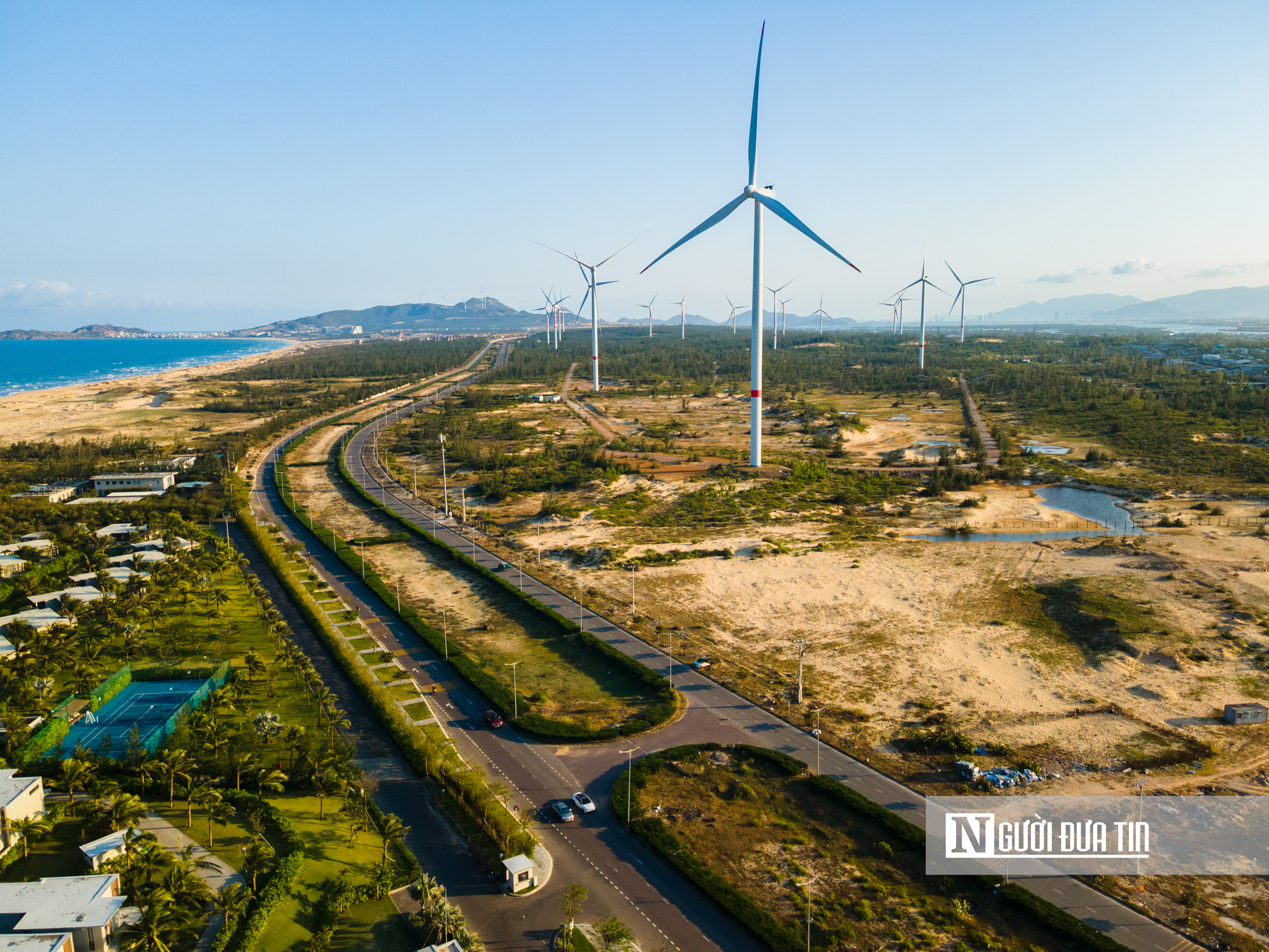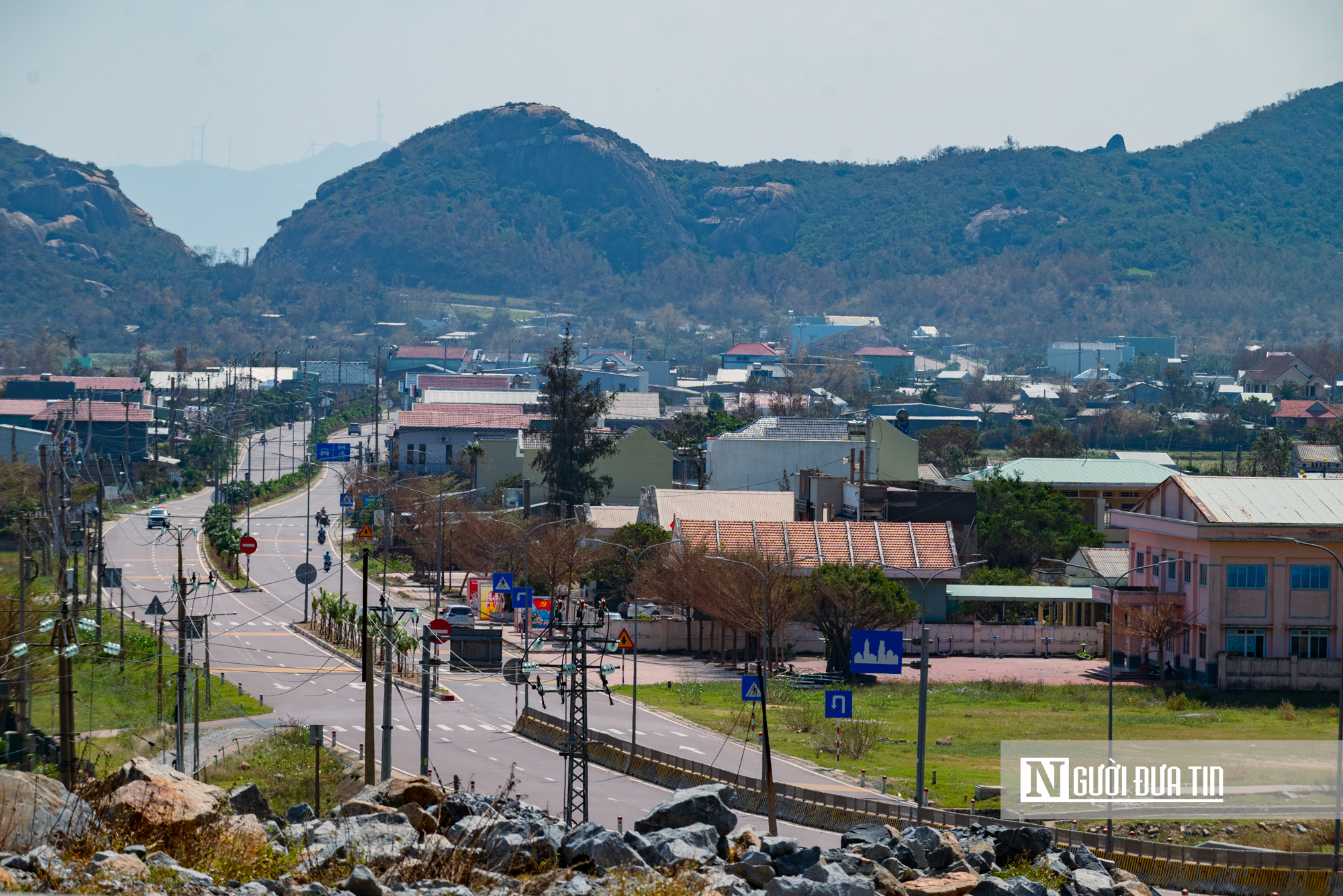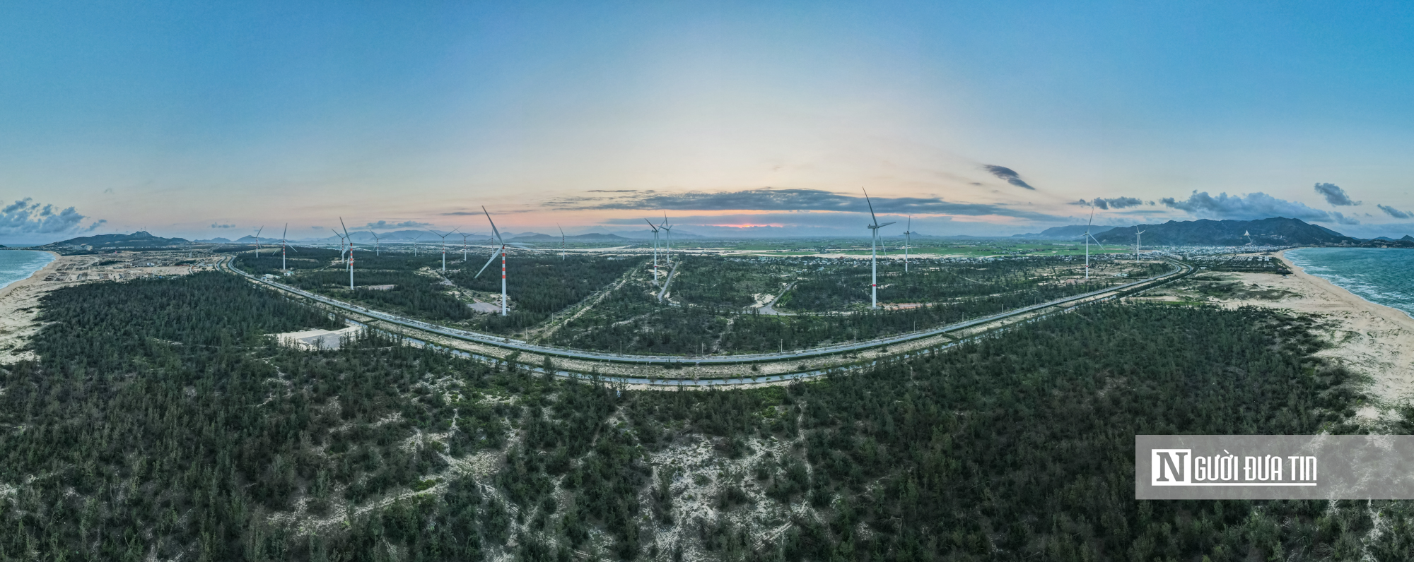 Đường tỉnh 639 băng qua cánh đồng quạt gió, xen giữa những đồi cát; giữa ba mặt núi, một mặt biển xanh ngát mênh mông.