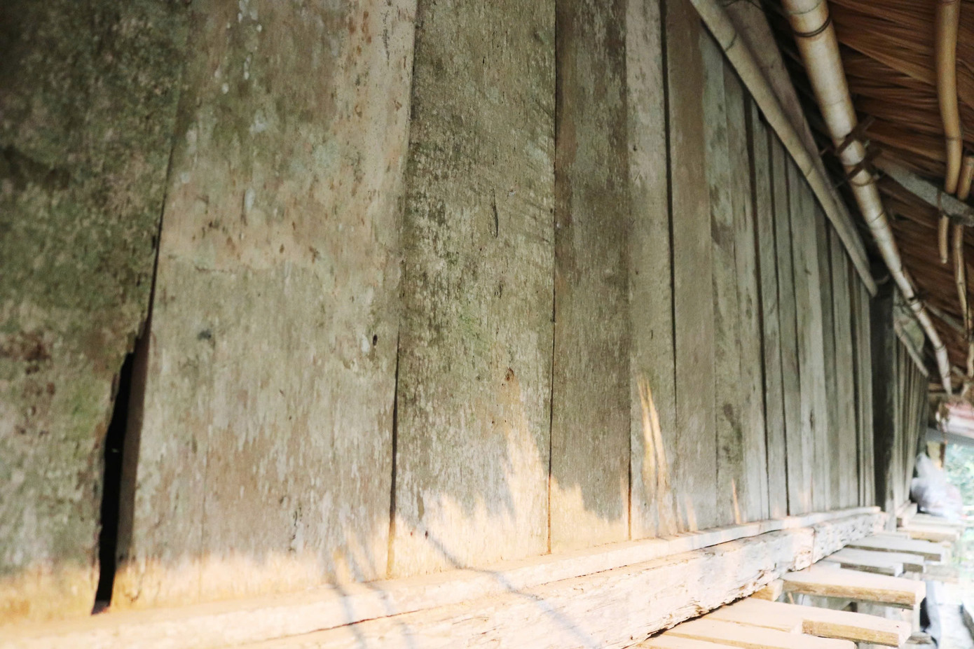 Những ngôi nhà sàn được thưng bằng gỗ.