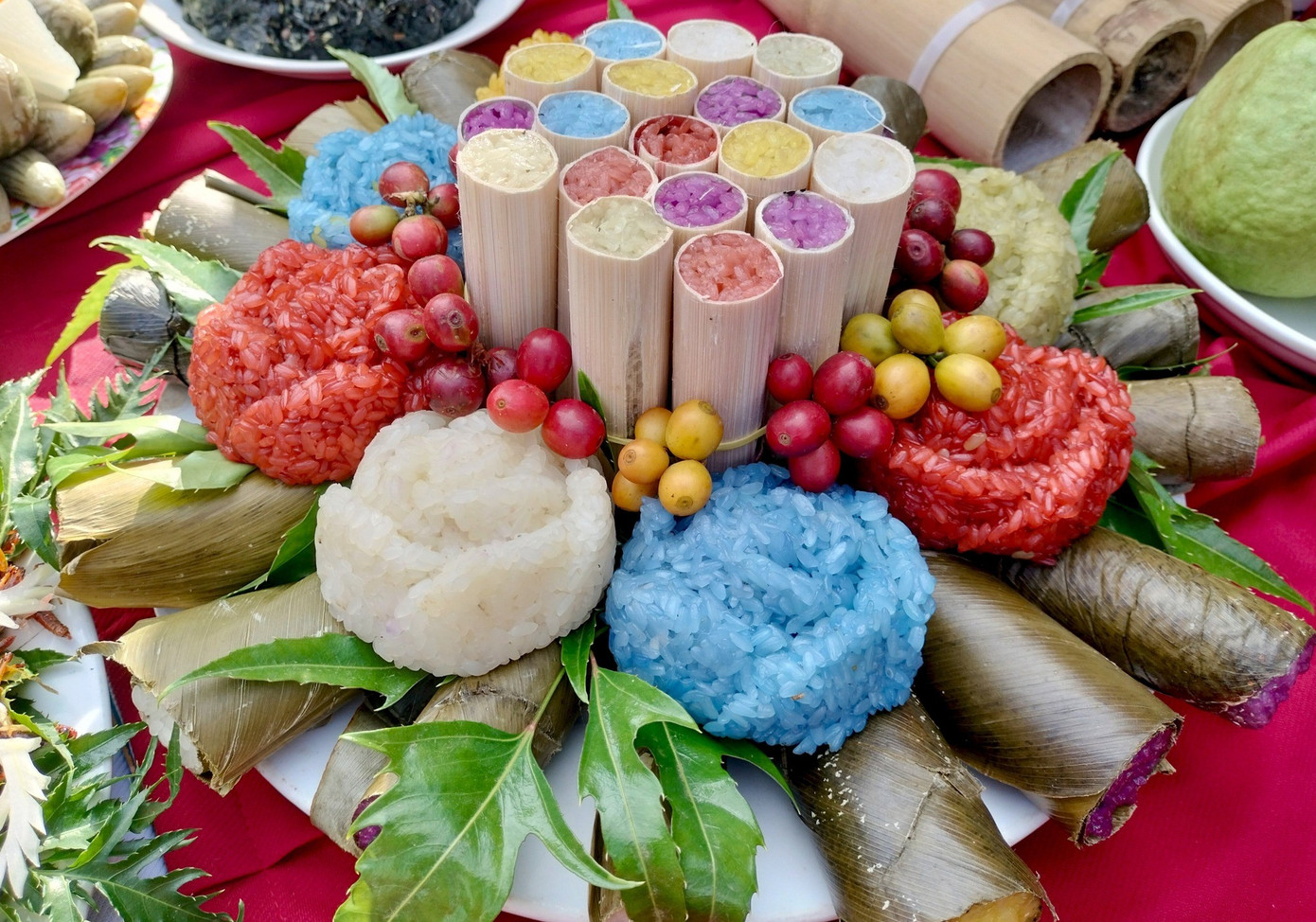 Ẩm thực nơi đây cũng là một “kho báu” với các món hấp dẫn như xôi ngũ sắc, chả cuốn lá bưởi, cá suối nướng, cơm lam, rượu cần… Những món ăn mộc mạc ấy vừa mang hương vị núi rừng, vừa thể hiện bàn tay khéo léo của phụ nữ Mường.