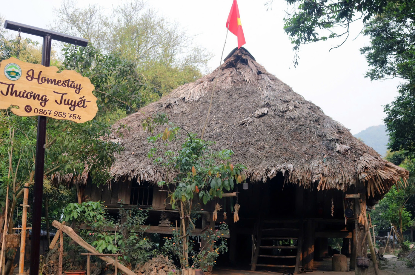 Xóm có 195 căn nhà, hầu hết là nhà sàn làm bằng gỗ, mái được lợp tranh cọ. Kiến trúc đó tạo nên khung cảnh bình yên, khiến du khách khi đặt chân tới đây đều thấy lòng nhẹ nhõm, thảnh thơi.