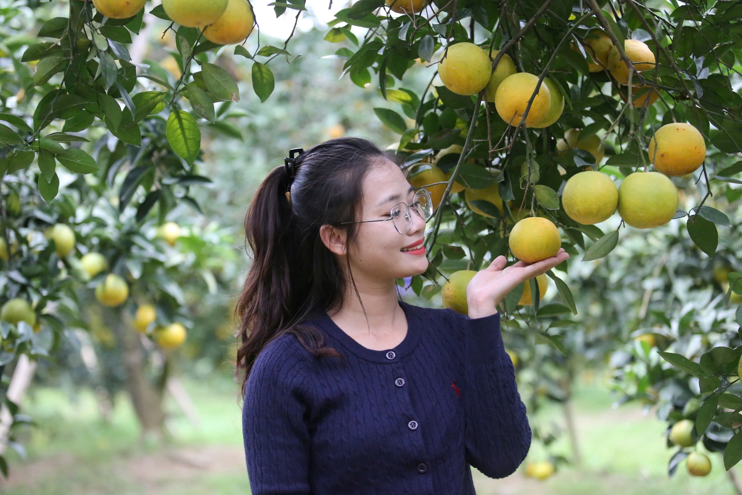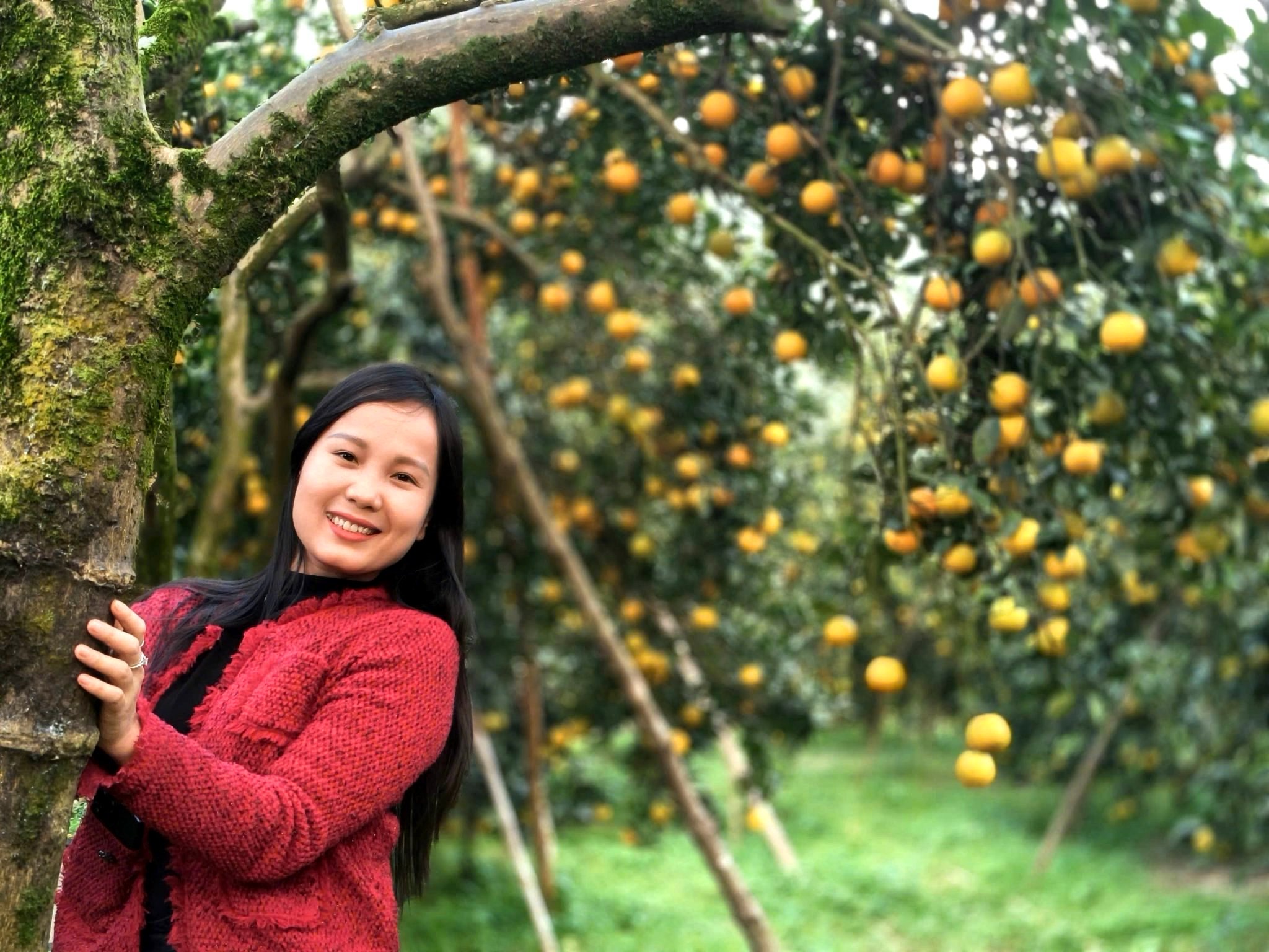 Bà Phan Thị Hiền đang chăm sóc, thu hoạch cam