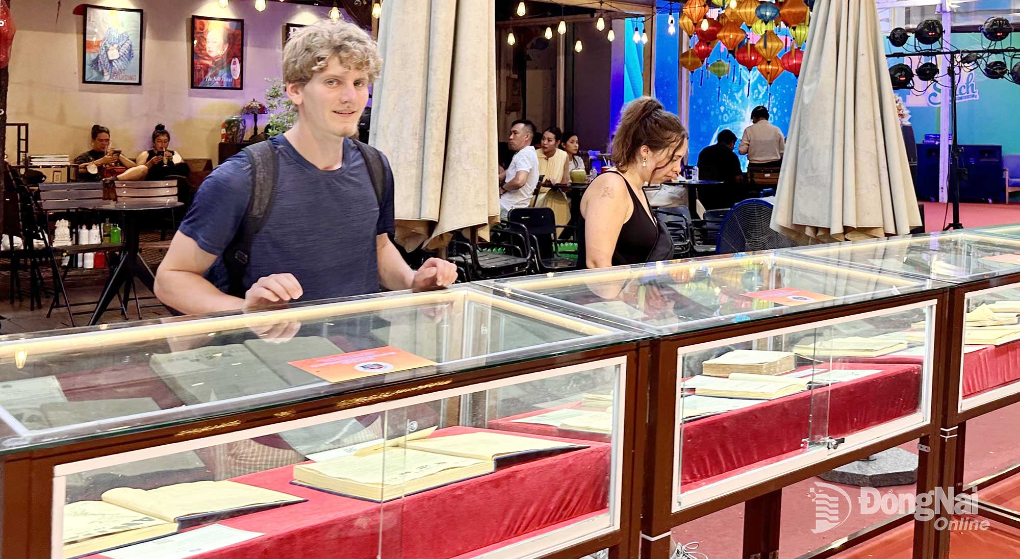 Du khách thích thú xem sách báo xưa của Việt Nam.