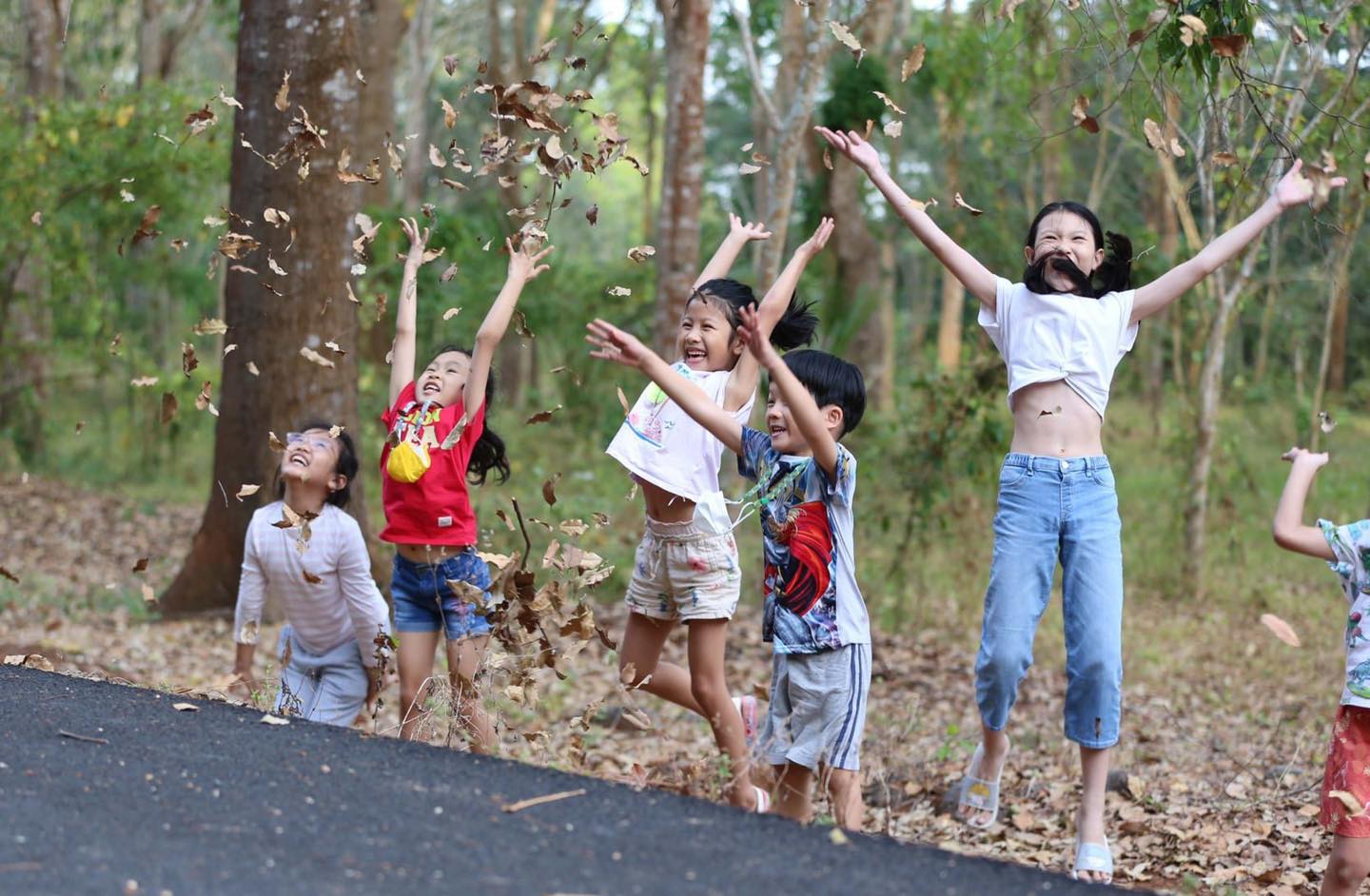 Trẻ em vui chơi trong những tuyến đường nhựa men rừng Xuân Sơn. Ảnh: QUANG VŨ