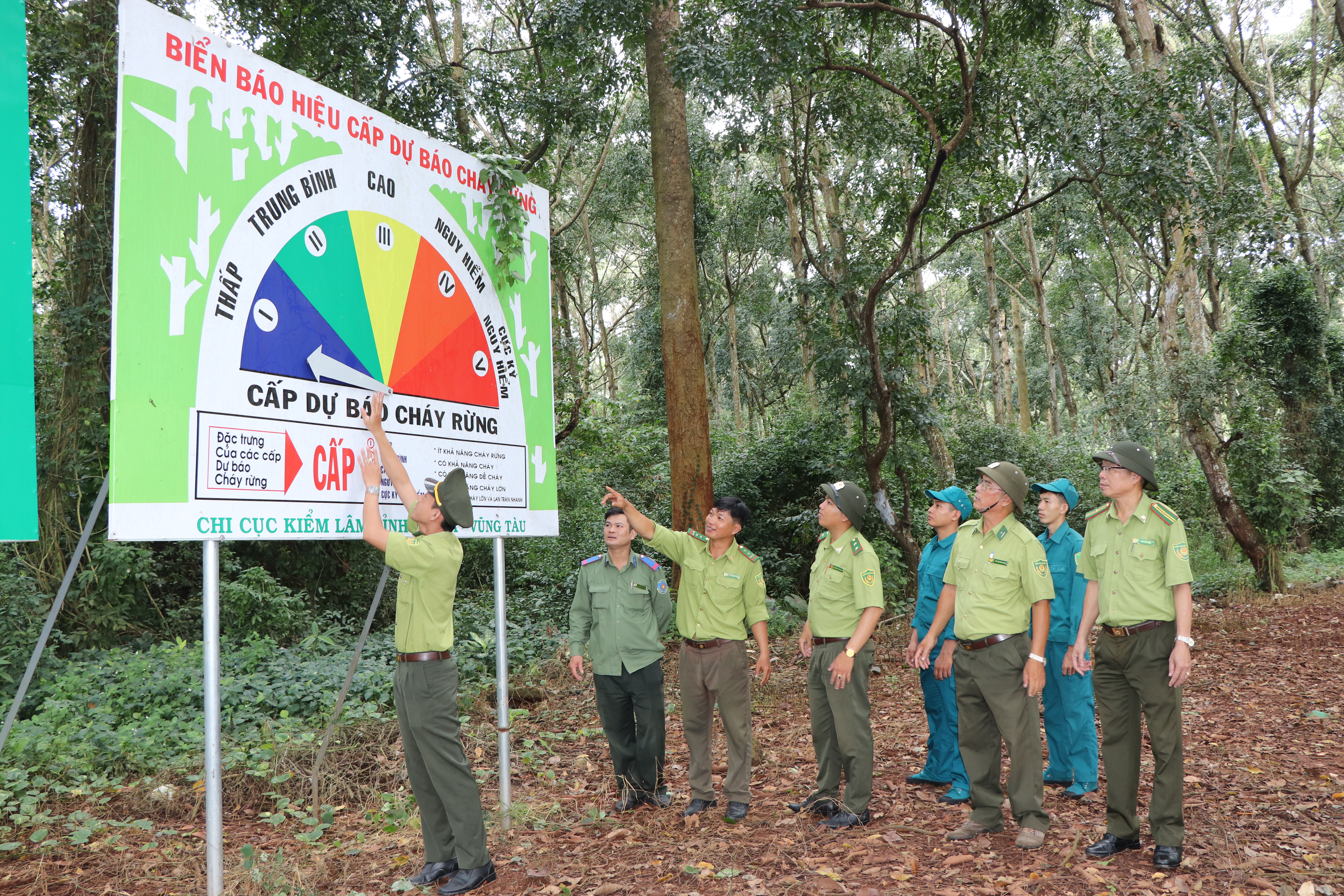 Hạt Kiểm lâm Phú Mỹ thường xuyên bám sát địa bàn, vận động doanh nghiệp và hộ dân sản xuất, sinh sống ven rừng ký cam kết bảo vệ rừng; cắm bảng “cấm lửa”; gắn biển báo hiệu cấp dự báo cháy rừng... tại các khu vực có nguy cơ cháy và tại các cửa ngõ ra vào rừng; xây dựng đường băng cản lửa vào mùa khô để bảo đảm PCCC rừng hiệu quả… Ảnh: QUANG VŨ
