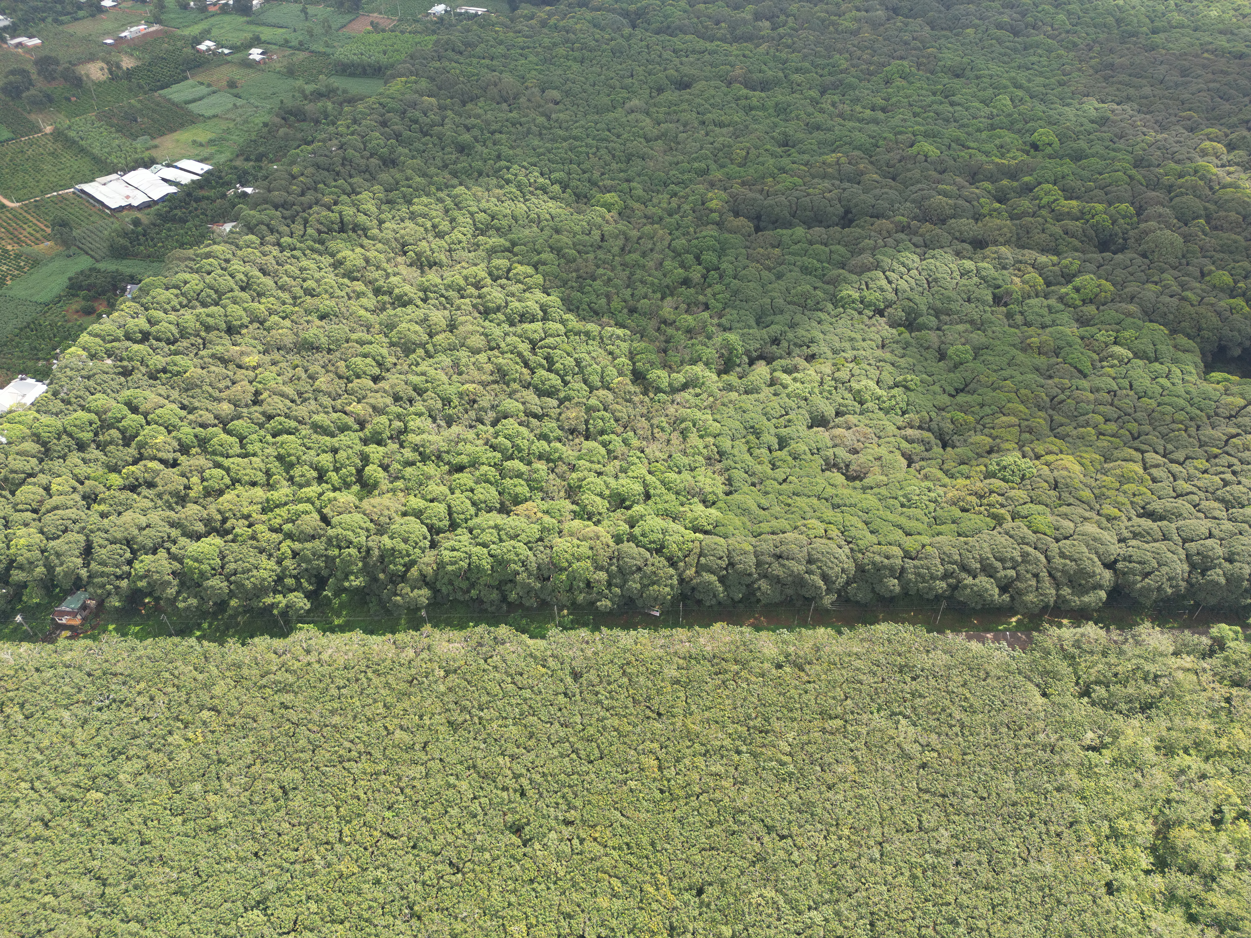 Nhìn từ trên cao, rừng phòng hộ Xuân Sơn chỉ có một màu xanh ngút ngàn. Ảnh: QUANG VŨ