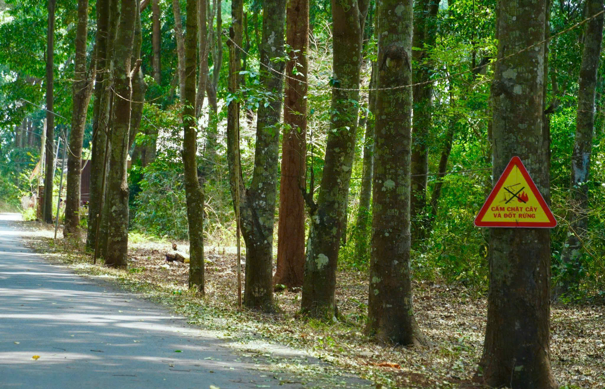 Những tấm bảng "cấm chặt cây và đốt rừng" được gắn ngay các khu vực bìa rừng, đường đi qua rừng. Ảnh: QUANG VŨ